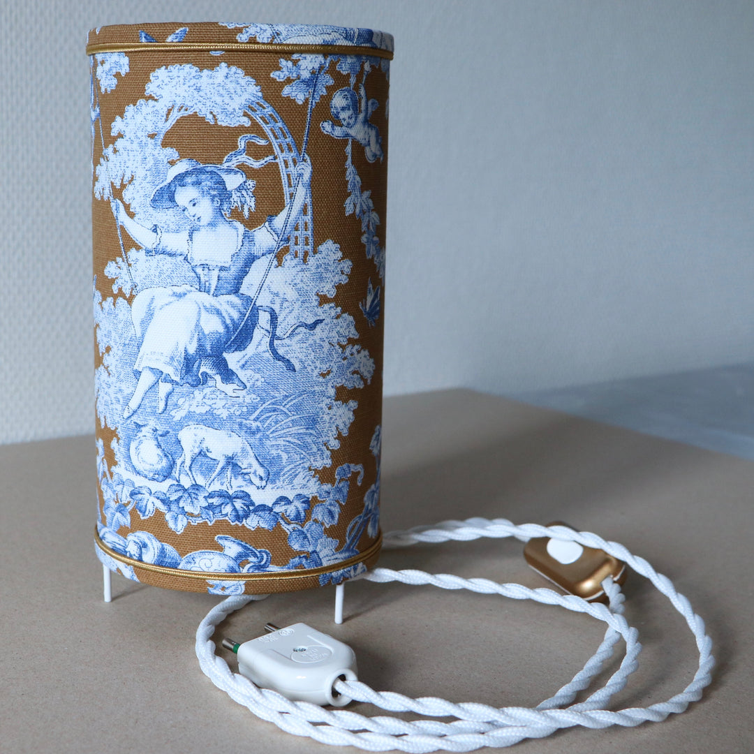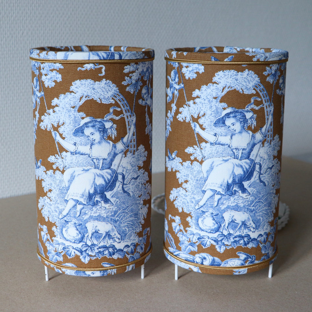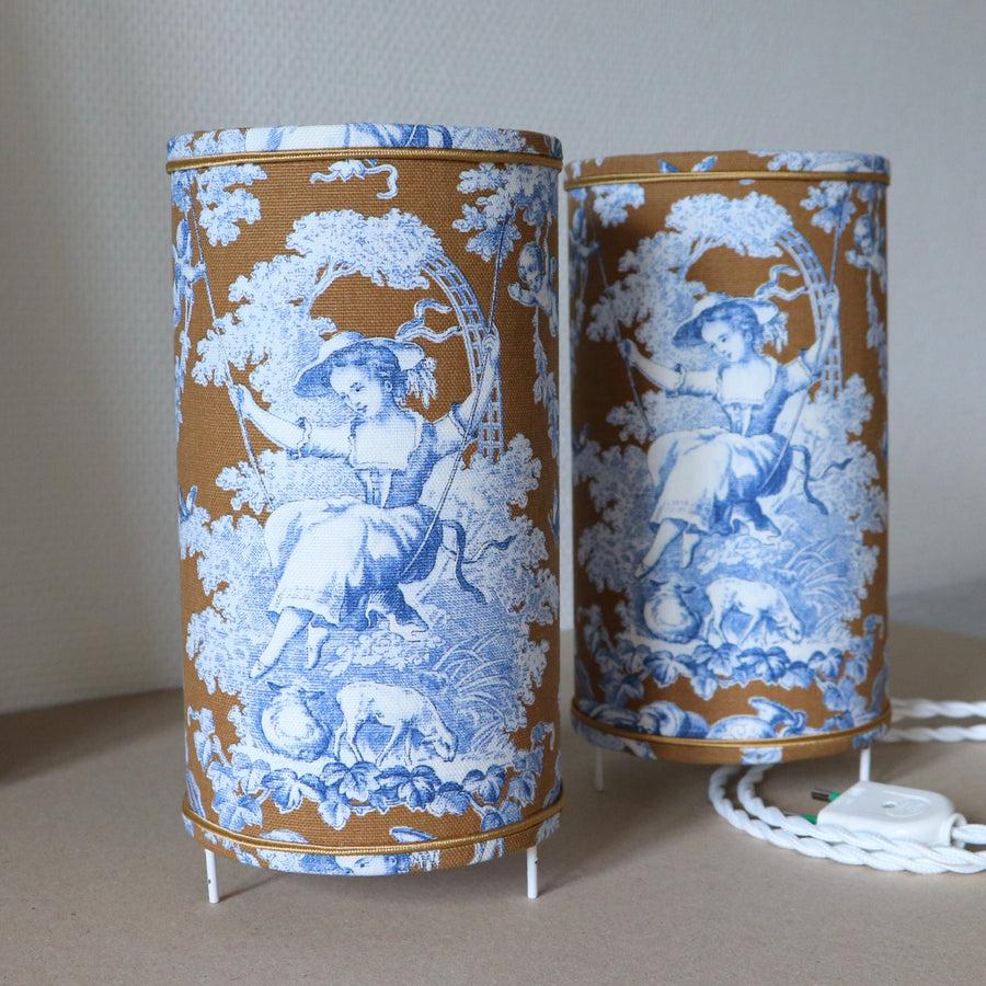 Abat-jour sur pieds (lampe), contrecollé en tissu, JOUY 2