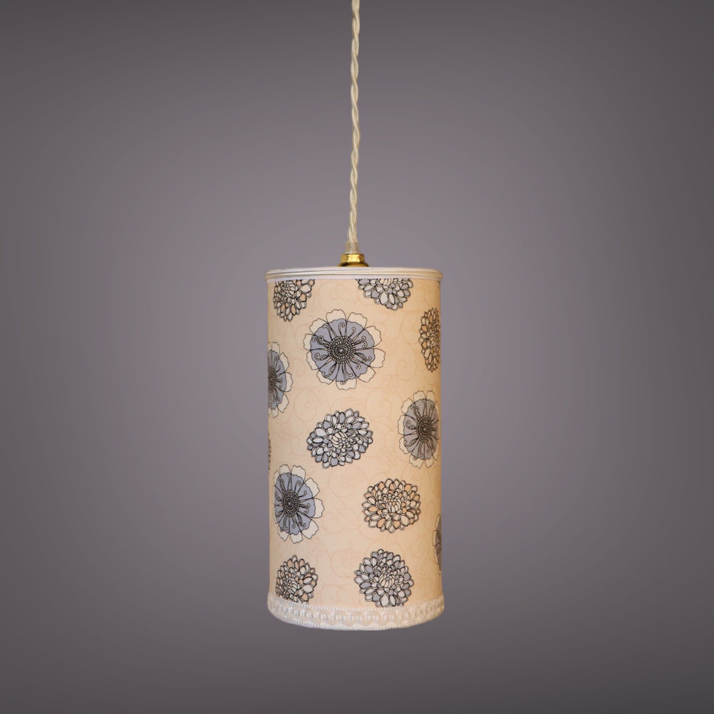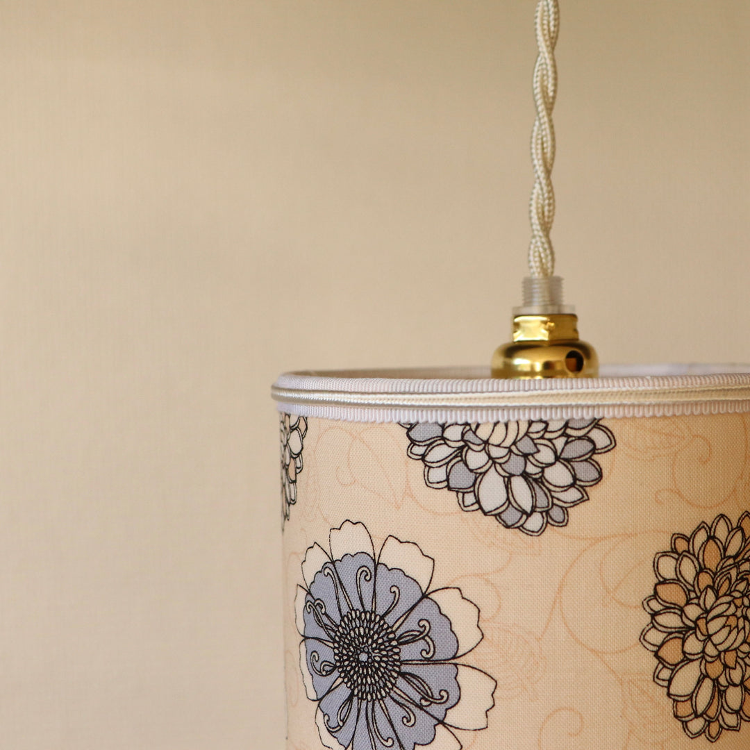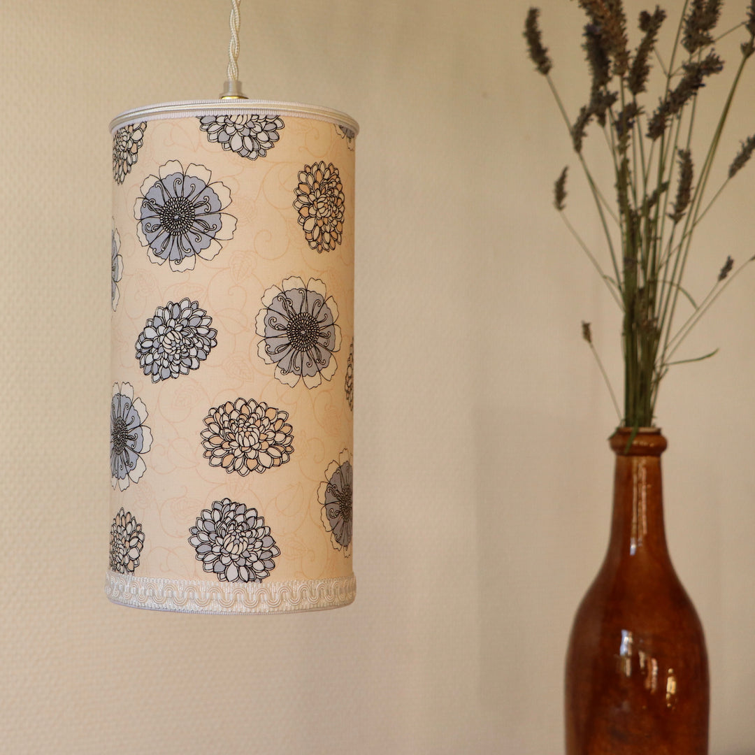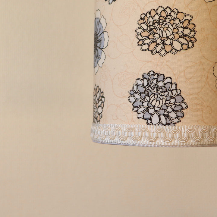 Baladeuse avec un abat-jour contrecollé en tissu FLEURS grises et beiges