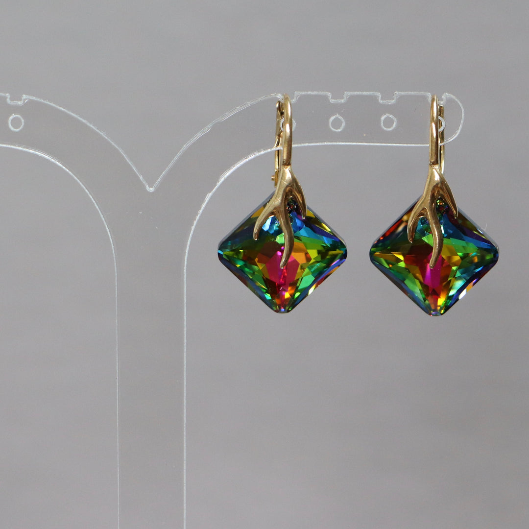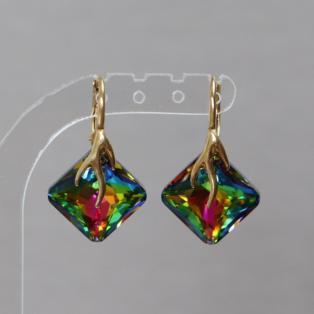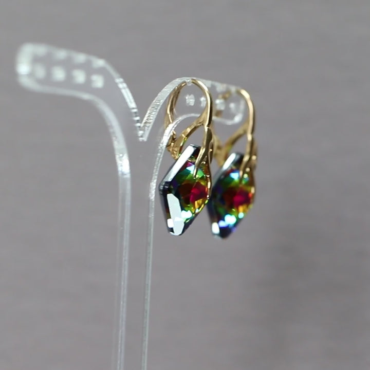 Boucles d'oreilles, cristaux Swarovski, argent doré, cristal VM, AGATHE