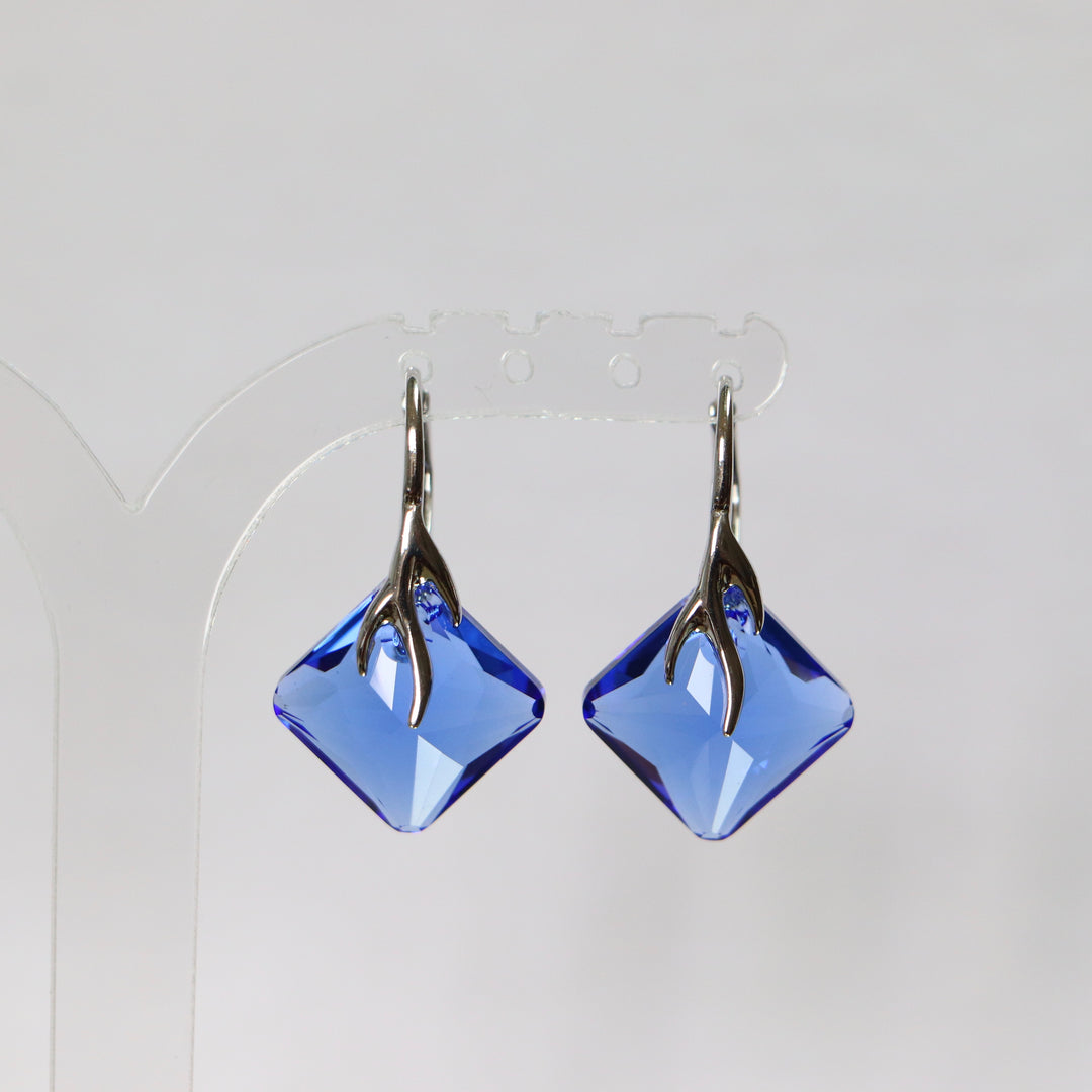 Boucles d'oreilles, cristaux Swarovski, argent rhodié, bleu, AGATHE