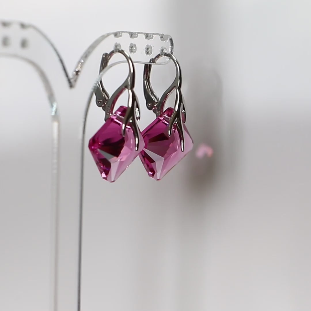 Boucles d'oreilles, cristaux Swarovski, argent rhodié, rose, AGATHE
