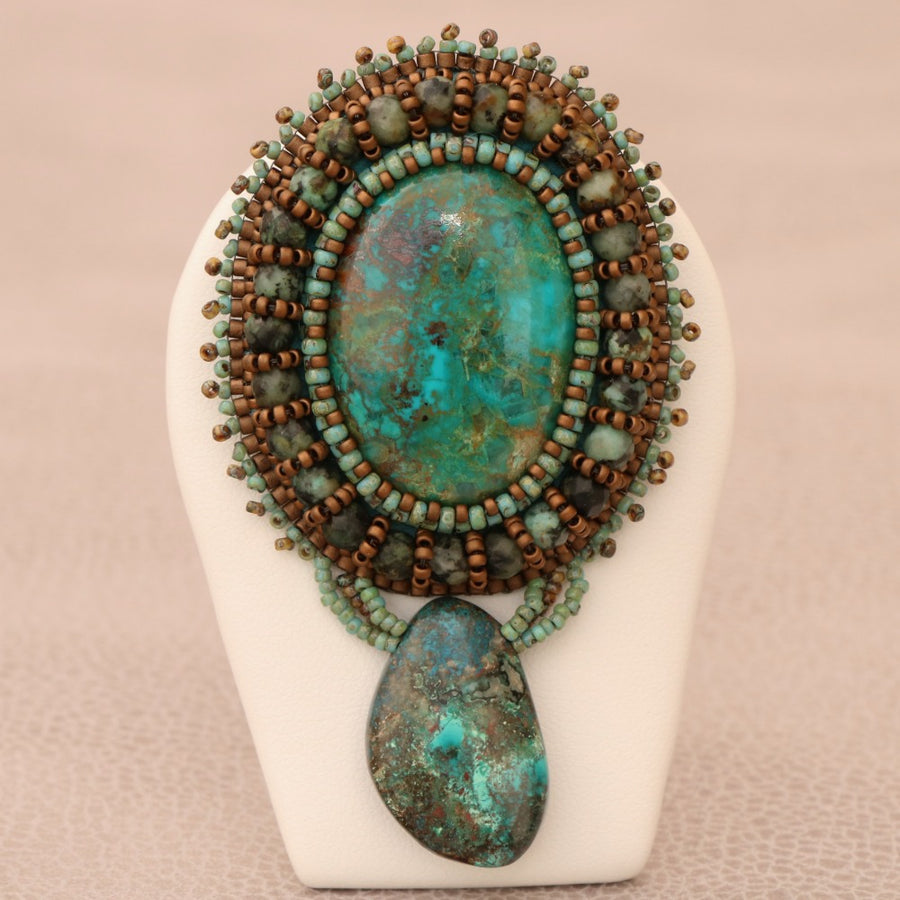 Collier MALA en jaspe ("turquoise africaine") et Pendentif en Labradorite