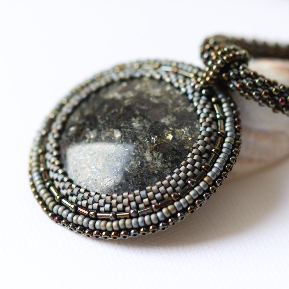 Collier MALA en tourmaline noire, onyx et hématite et Pendentif en quartz rutile