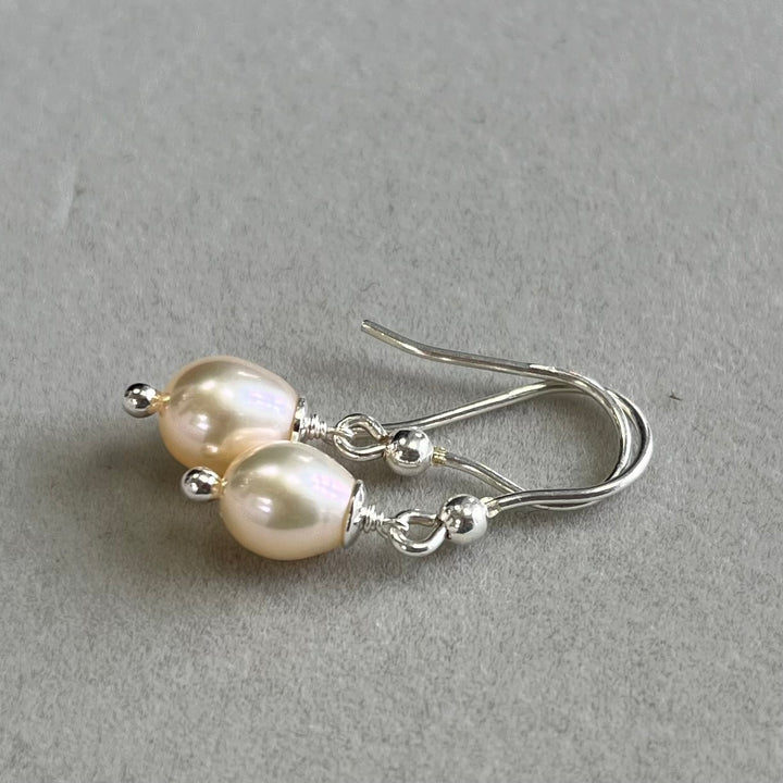 Boucles d'oreilles avec perles, couleur légèrement rose, en argent