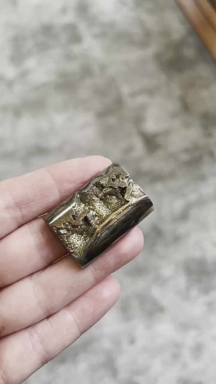 Ammonite pyritisée, taille cabochon, géode, pseudomorphe, fossile, pièce unique pour créateur