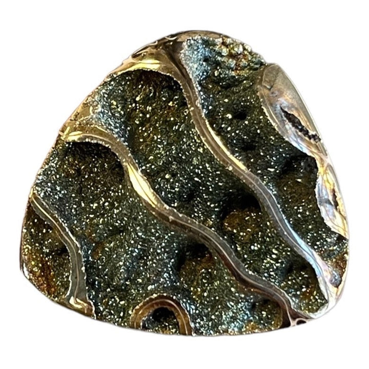 Ammonite pyritisée, taille cabochon, géode, pseudomorphe, fossile, pièce unique pour créateur