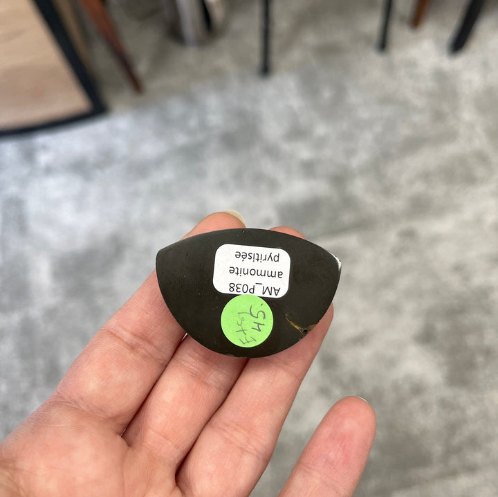 Ammonite pyritisée, taille cabochon, géode, pseudomorphe, fossile, pièce unique pour créateur