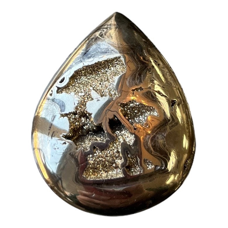 Cabochon en ammonite pyritisée, géode, pseudomorphe, fossile.