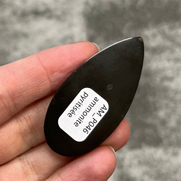 Cabochon en ammonite pyritisée, géode, pseudomorphe, fossile.
