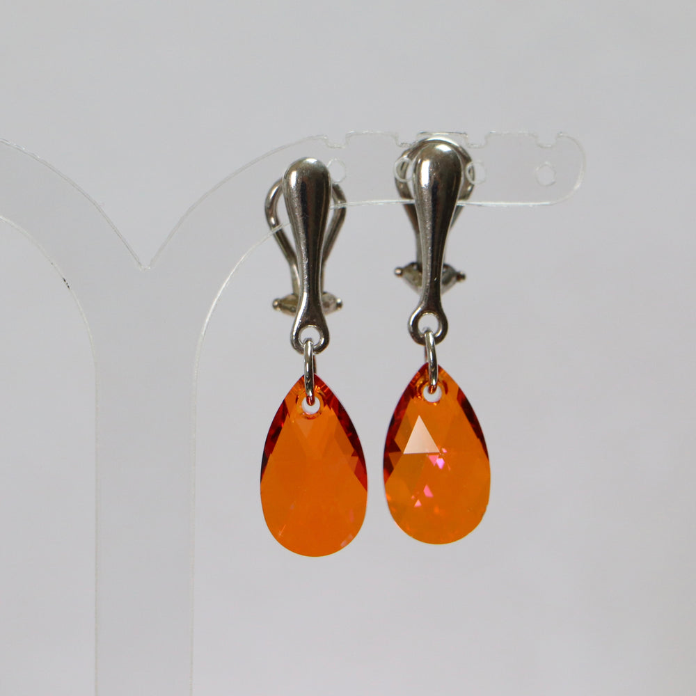 Boucles d'oreilles (crochets, dormeuse, puces ou à clips), cristaux Swarovski, argent doré, collection LARME, orange