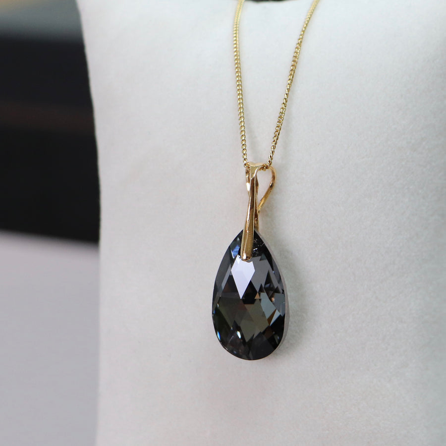 Pendentif (grande goutte) avec ou sans chaine, cristaux Swarovski, argent doré, collection LARME, gris argenté