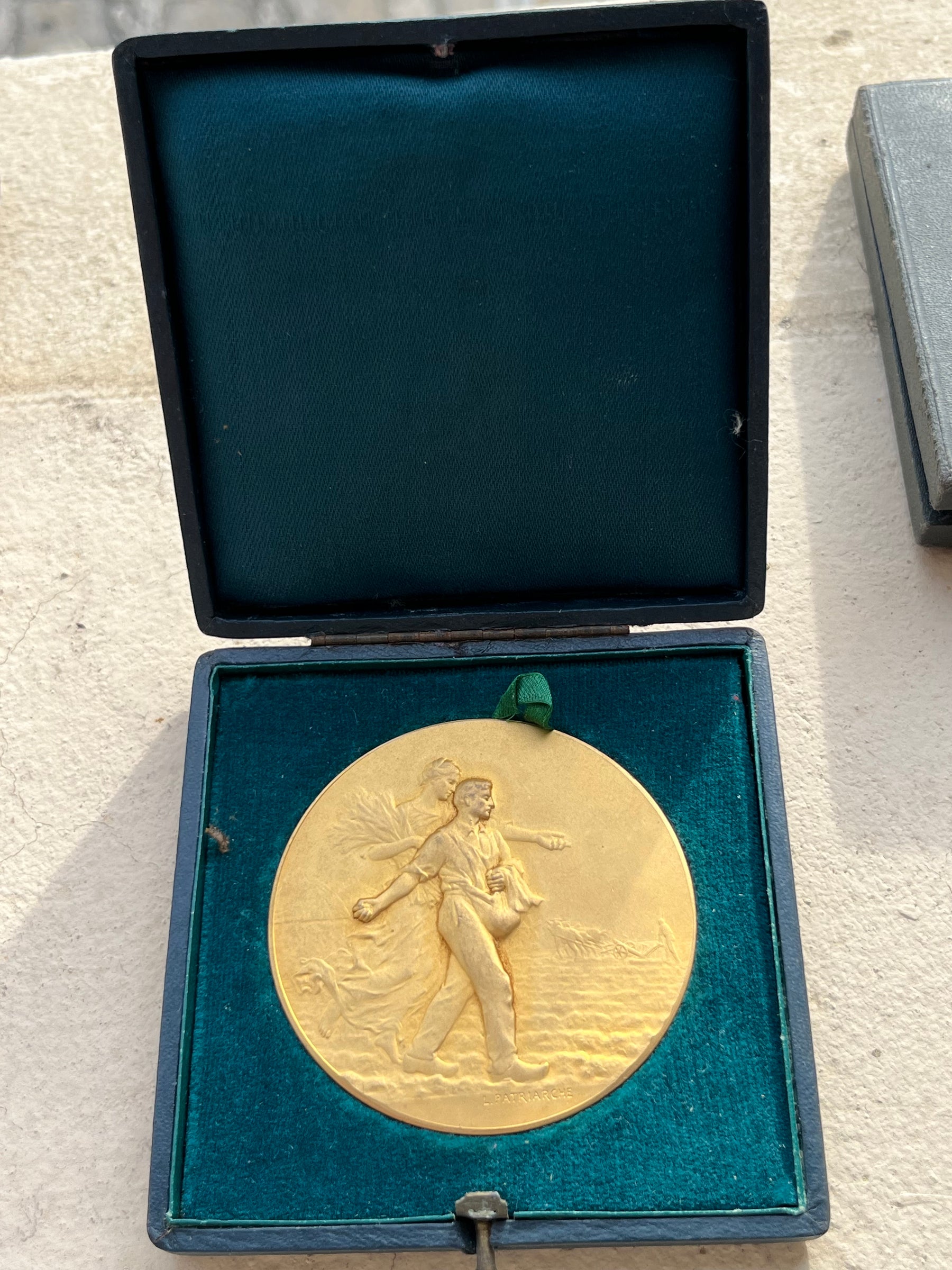 très belle  medaille en bronze doré non attribuée dans sa boite d’origine