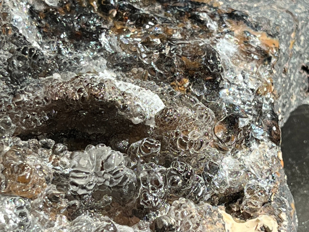 grand échantillon d’Opale hyalite avec aragonite blanche