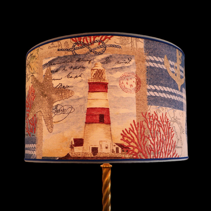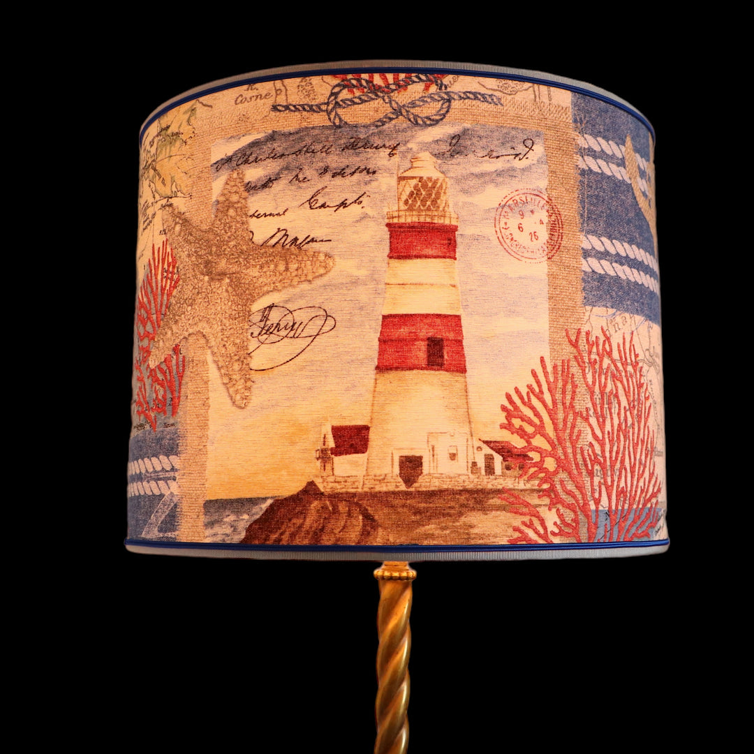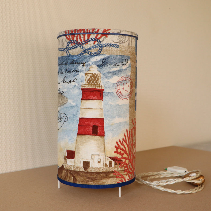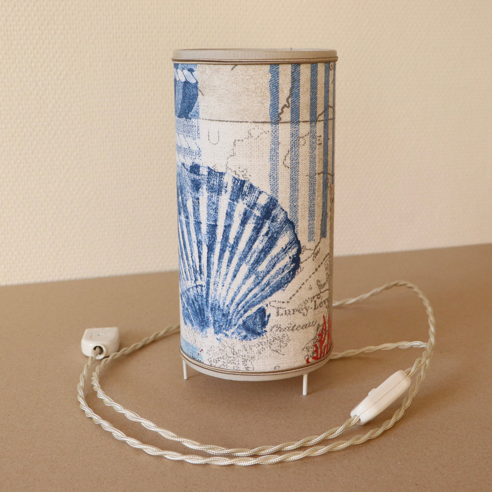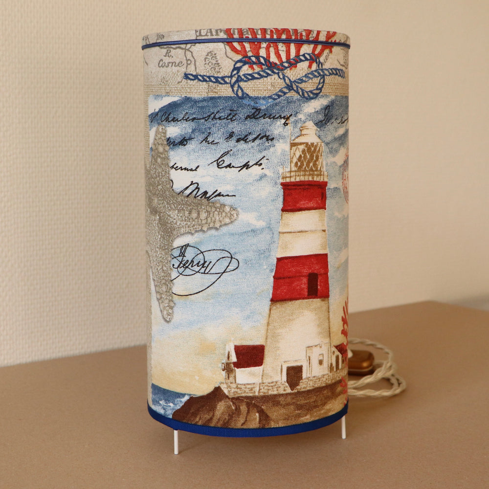 Abat-jour sur pieds (lampe), contrecollé en tissu, PHARE bleu