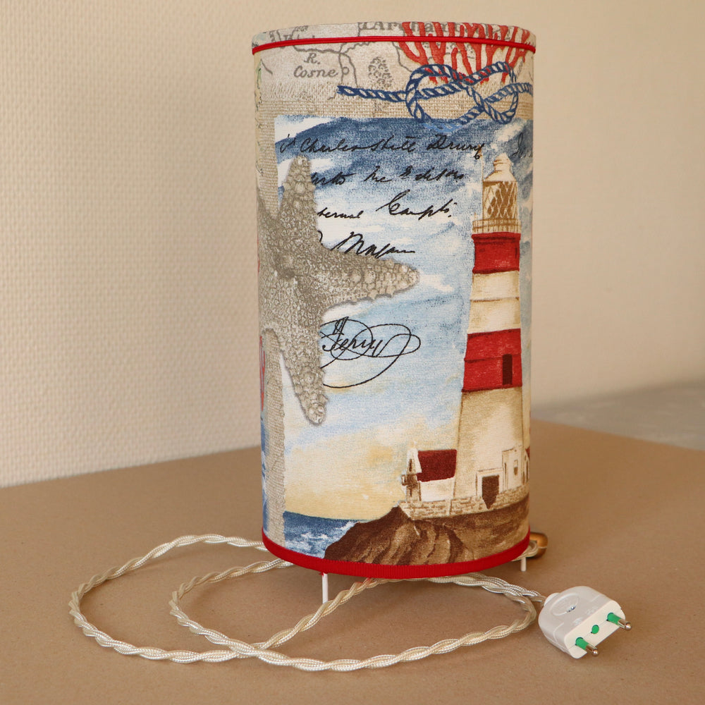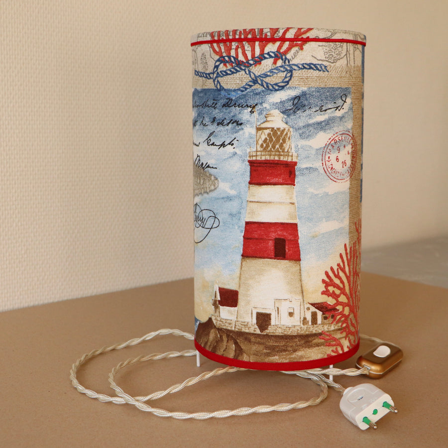 Abat-jour sur pieds (lampe), contrecollé en tissu, PHARE rouge