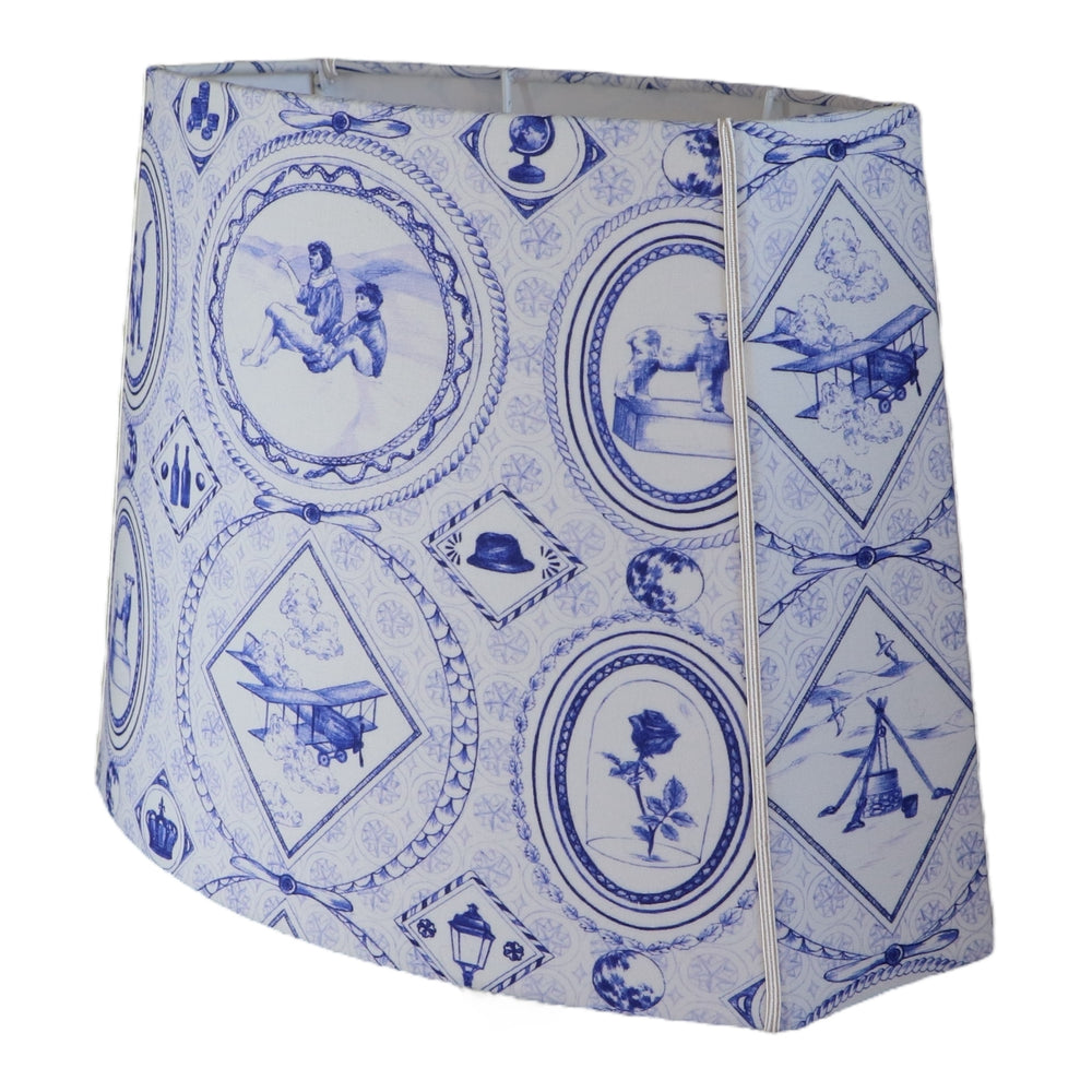Forme: abat-jour ovale à pans coupés. Cette forme moderne et élégante permet de gagner de la place en profondeur, idéal sur un pied de lampe, posé sur une cheminée ou une console.