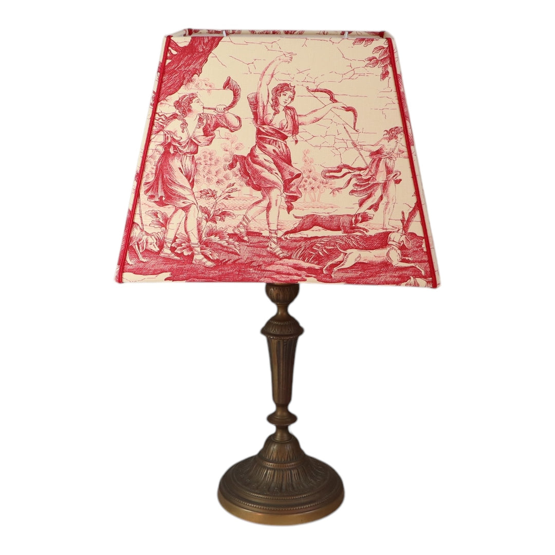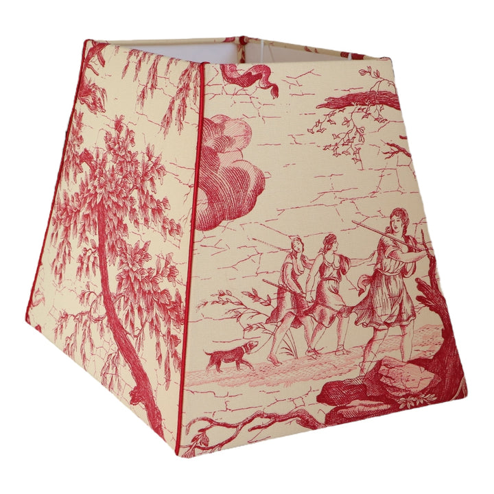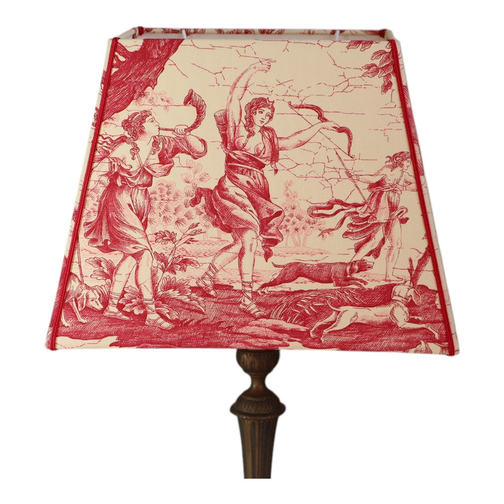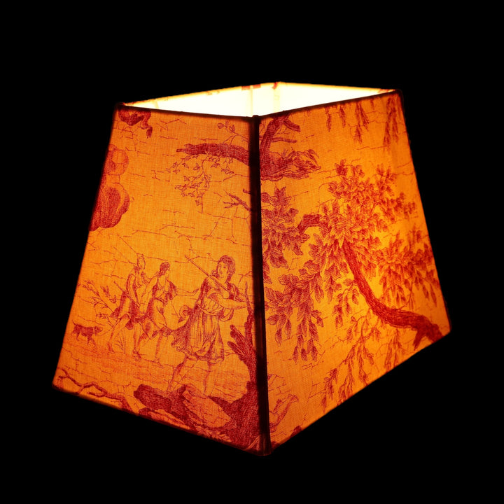 Abat-jour ovale à pans coupés, Diane (rouge), tissu d'éditeur, contrecollé, fait main