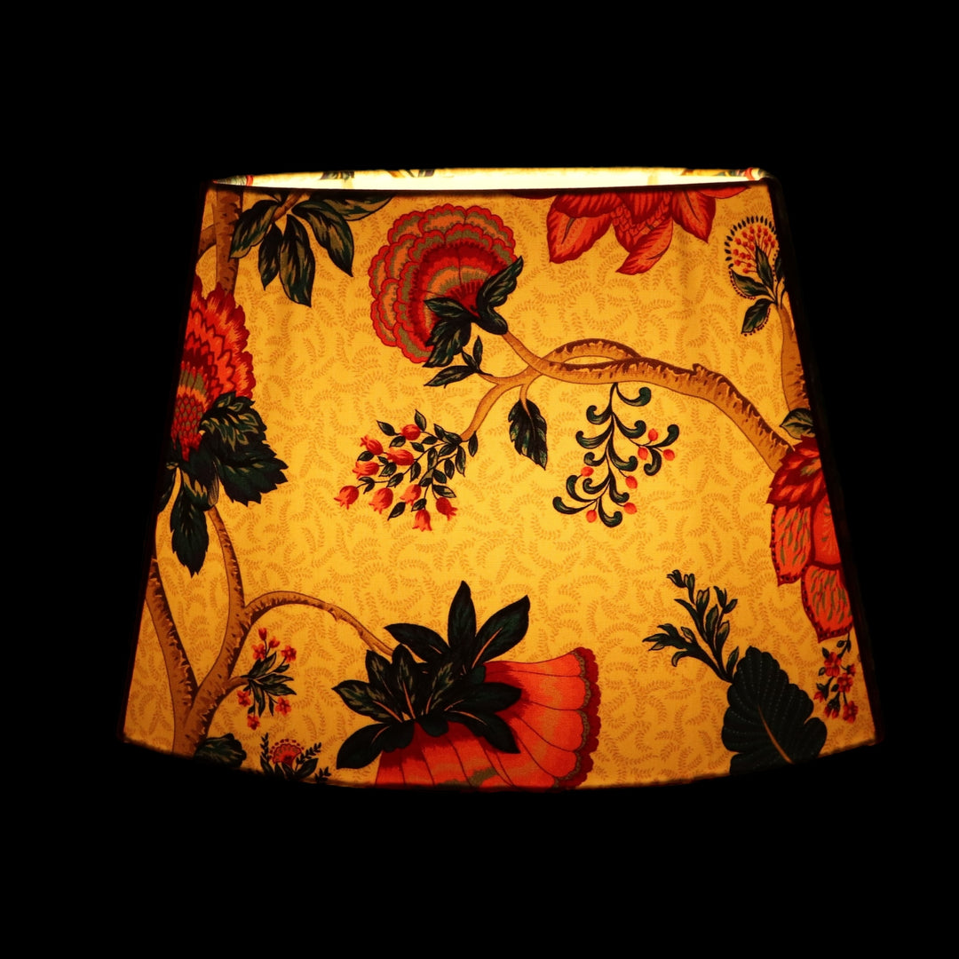 L'abat-jour est produit dans notre atelier, fabrication artisanale, fait-main en France. Chaque abat-jour est unique et le positionnement des motifs peut légèrement varier d’un exemplaire à l’autre.