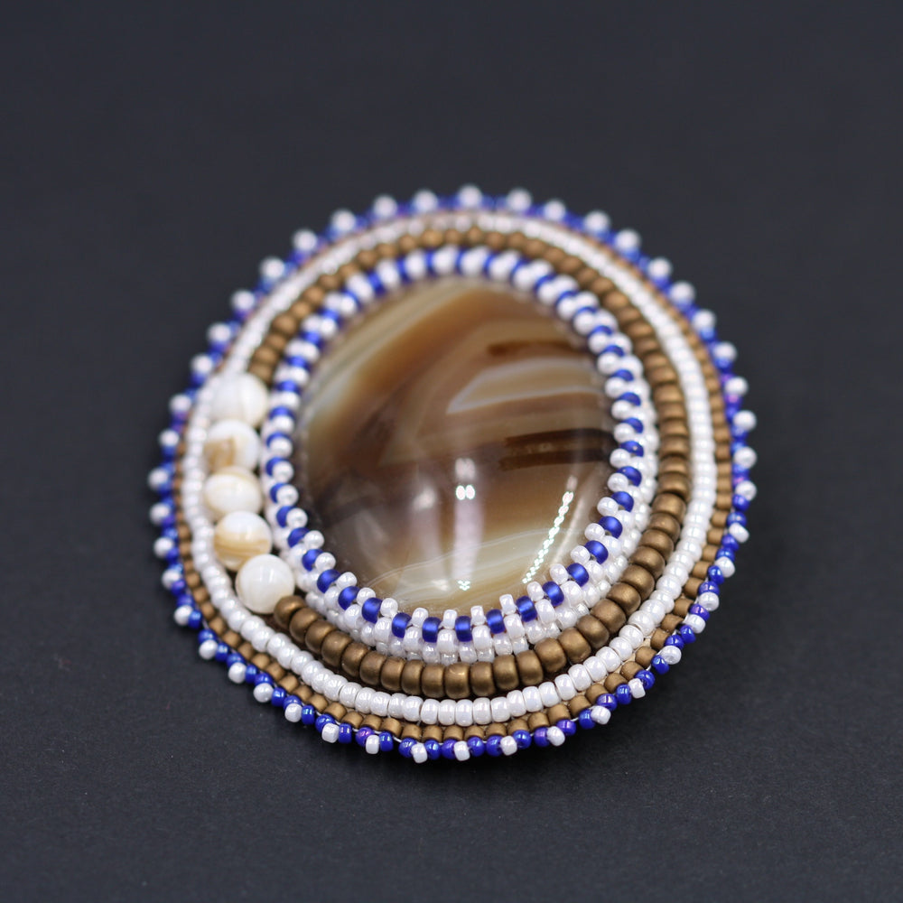 Bestickte Spindel, Achat, blaues Braun