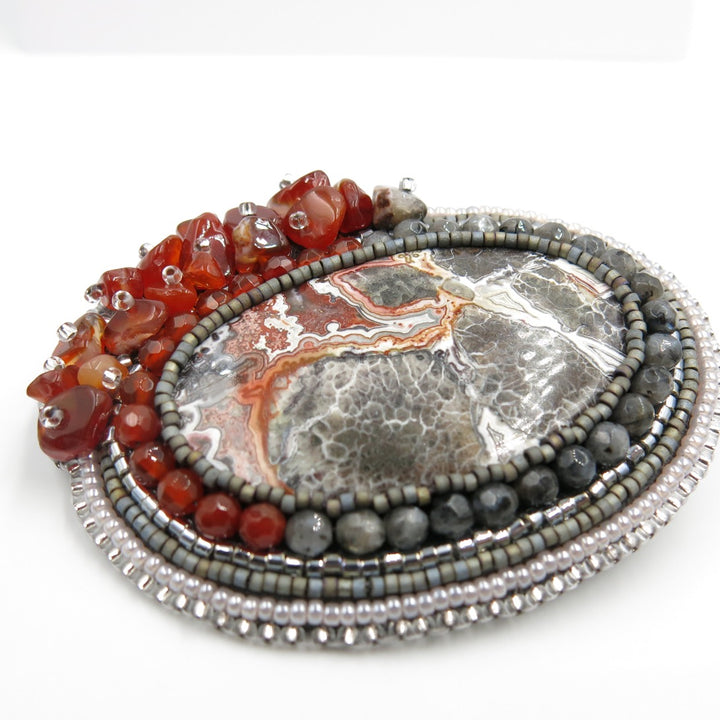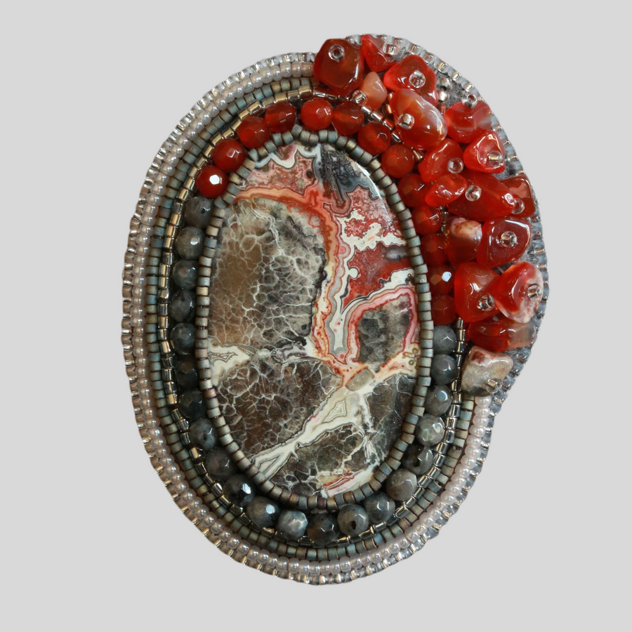 - Cabochon des Achatdesigners (Crazy Lace Achate, 30x52x4 mm, 54cts)