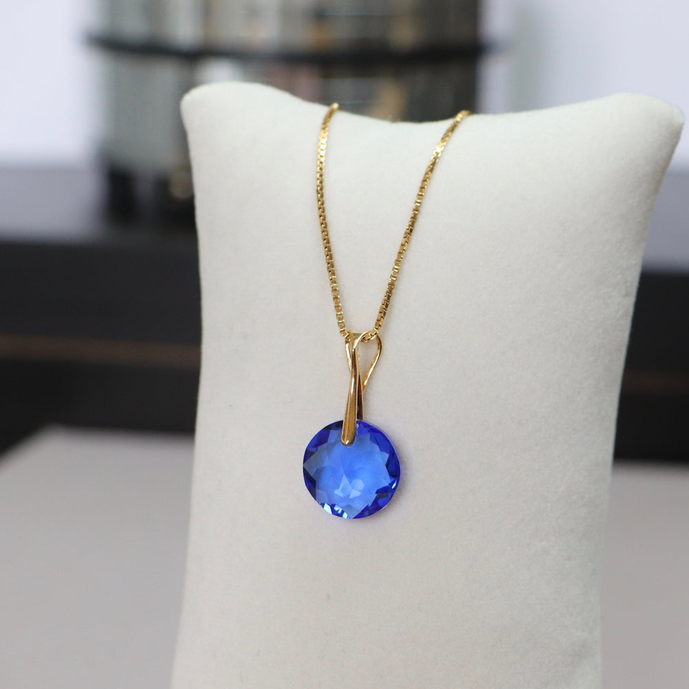 Pendant, Swarovski crystals, gold-plated silver, blue, BONBON