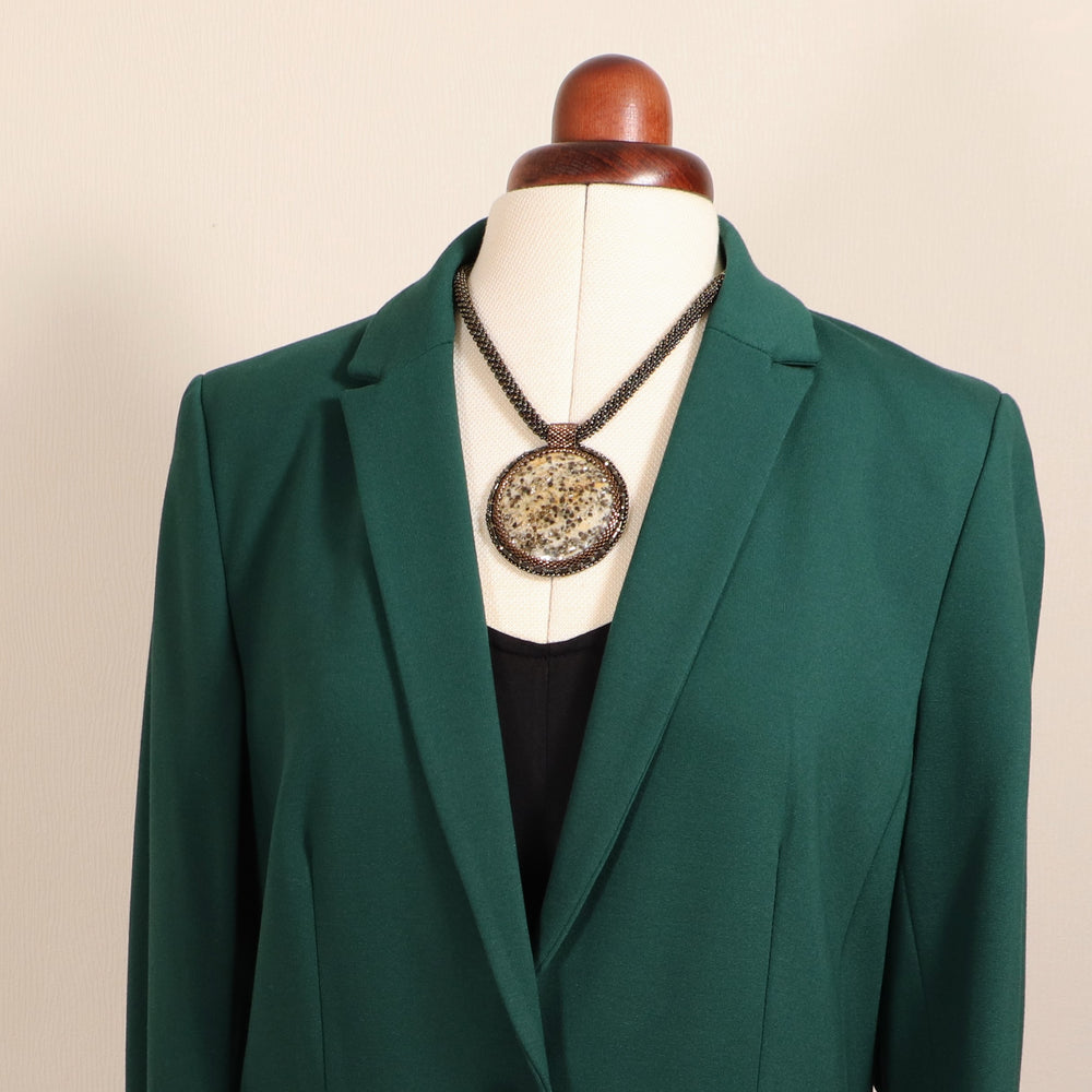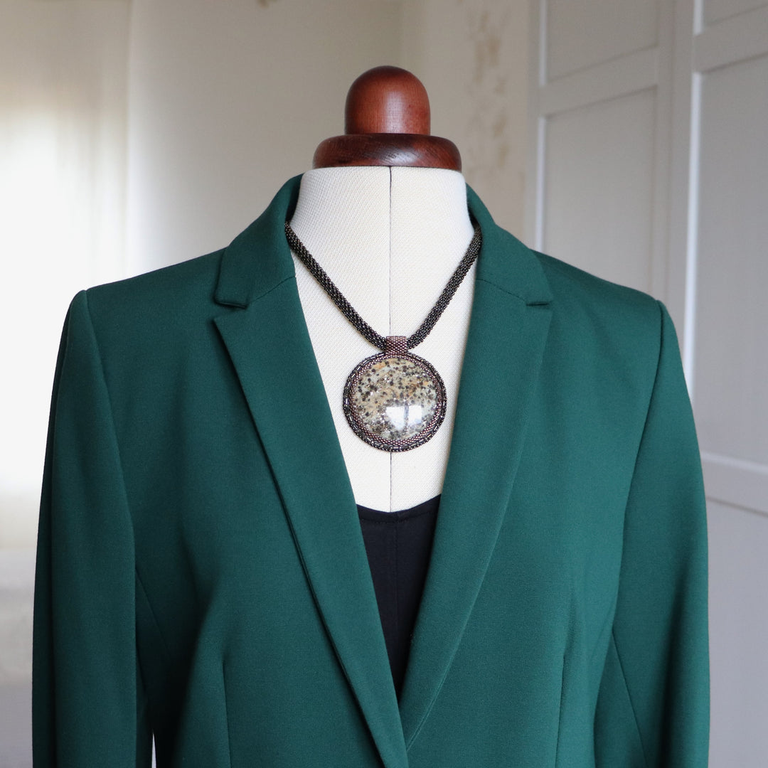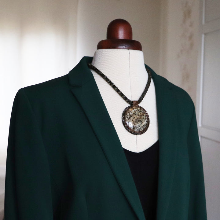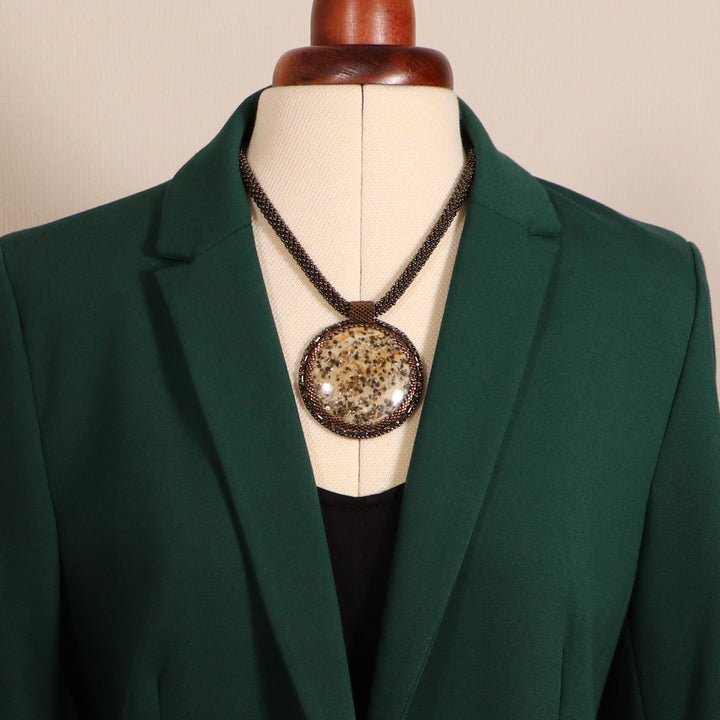 Embroidered flower necklace - volcanic rhyolite & pearls miyuki