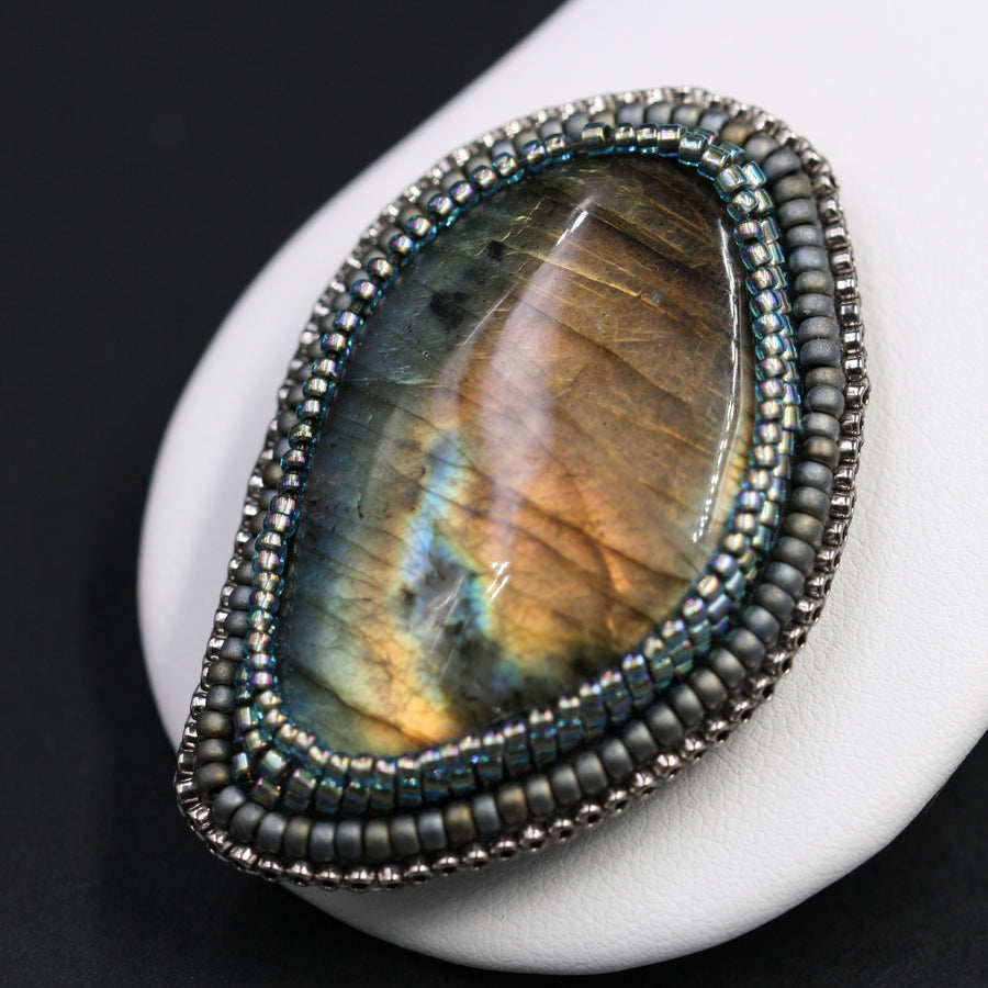 Embroidered flower necklace - volcanic rhyolite & pearls miyuki