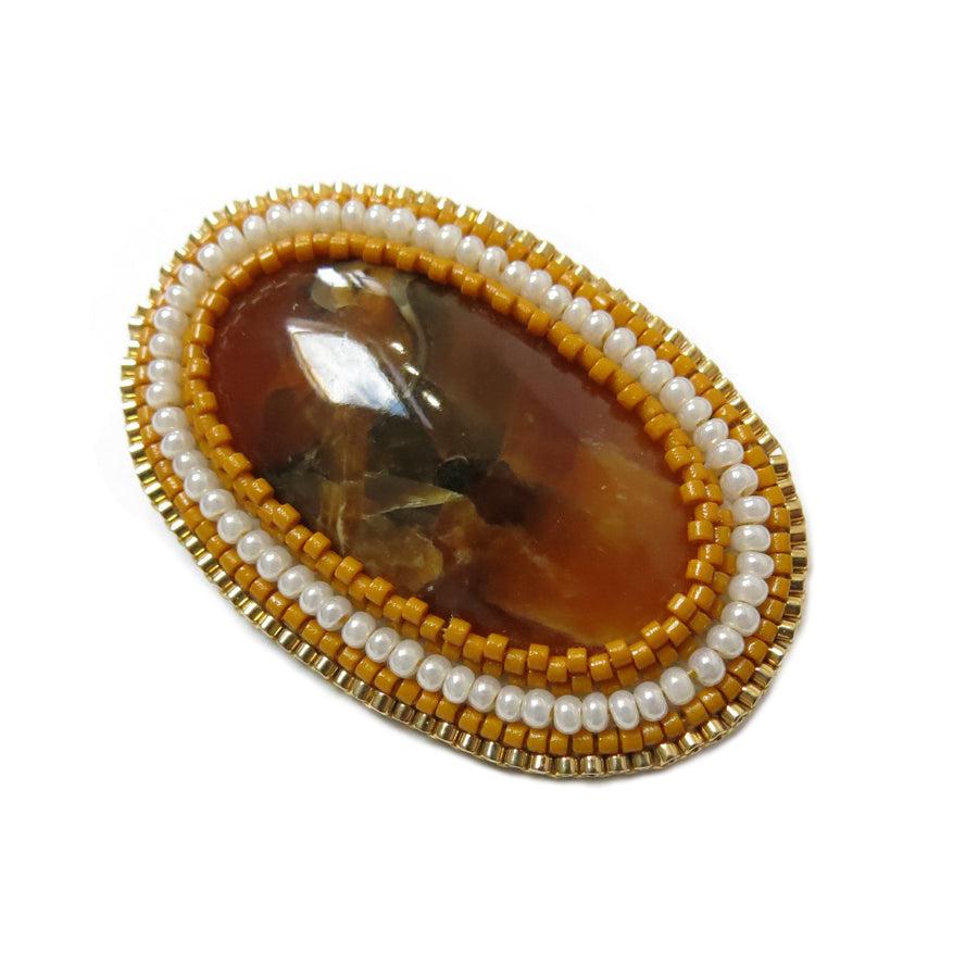 Embroidered flower necklace - volcanic rhyolite & pearls miyuki