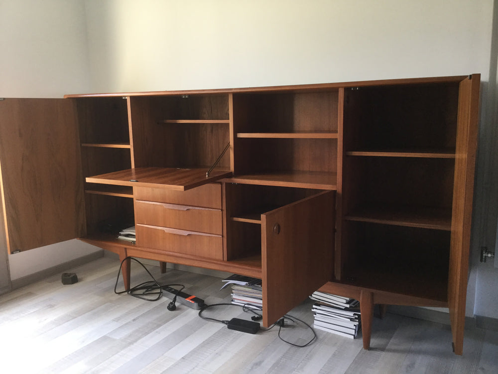 French furniture in early 1970s in teak and plated - some veneer defects on the secretary's interior door. Traces and scratches on top