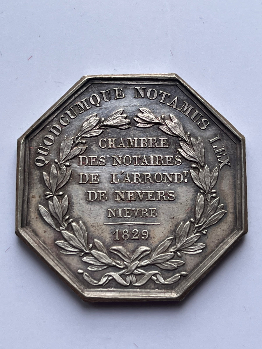 1 silver token, notary, nevers of borrel horn