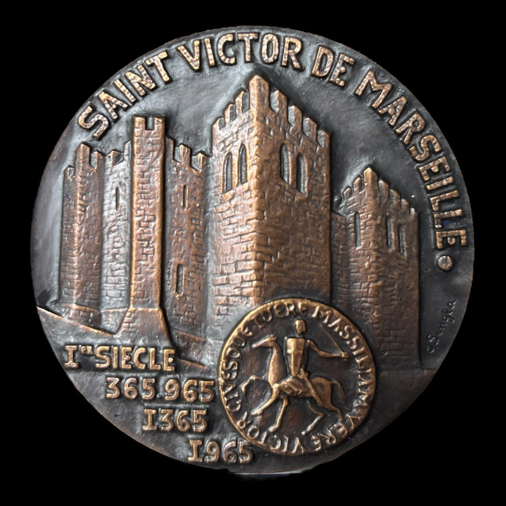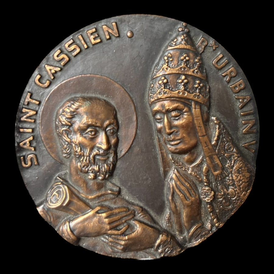 Currency medal in Paris with a very pretty commemorative chocolate patina from Saint Victor de Marseille with Urbain V (1362-1370) sixth pope in Avignon and the 200e pope fromCatholic Church