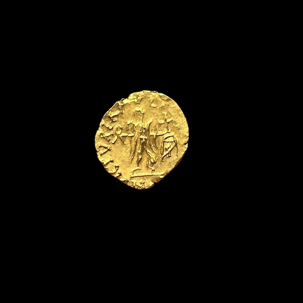 RV. Victvria ///. Very stylized victory from the front holding a crown and a Croisette; Monogram of the Church of Lyon in the field on the right; At the inverted stupid exergue.