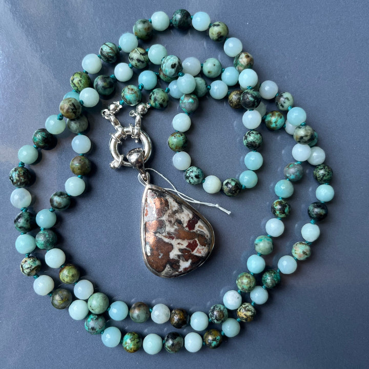 - Pearls in: Amazonite faceted 6 mm, jaspe ("African turquoise") 6 mm