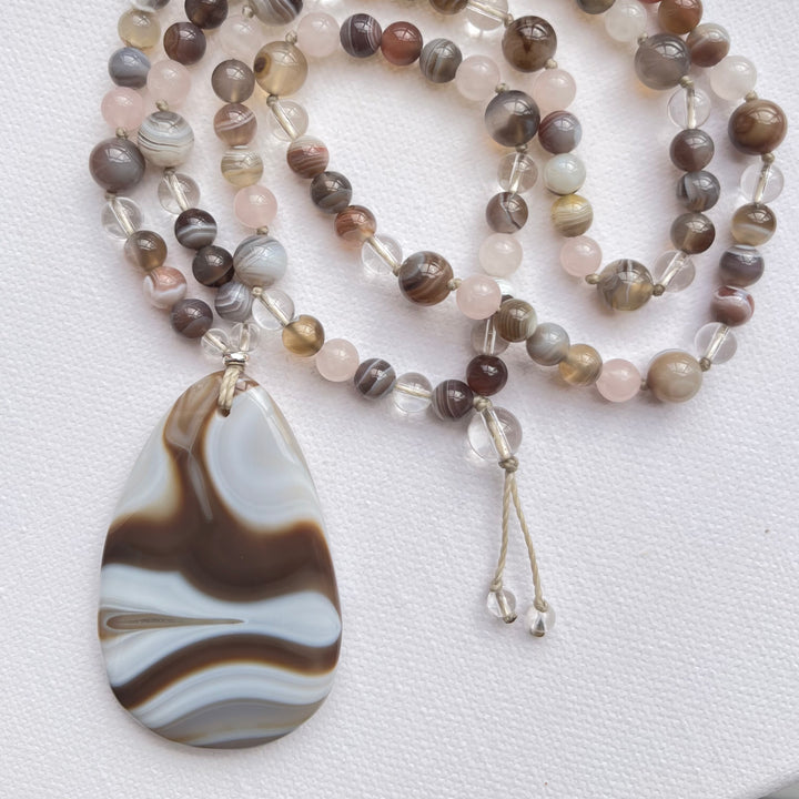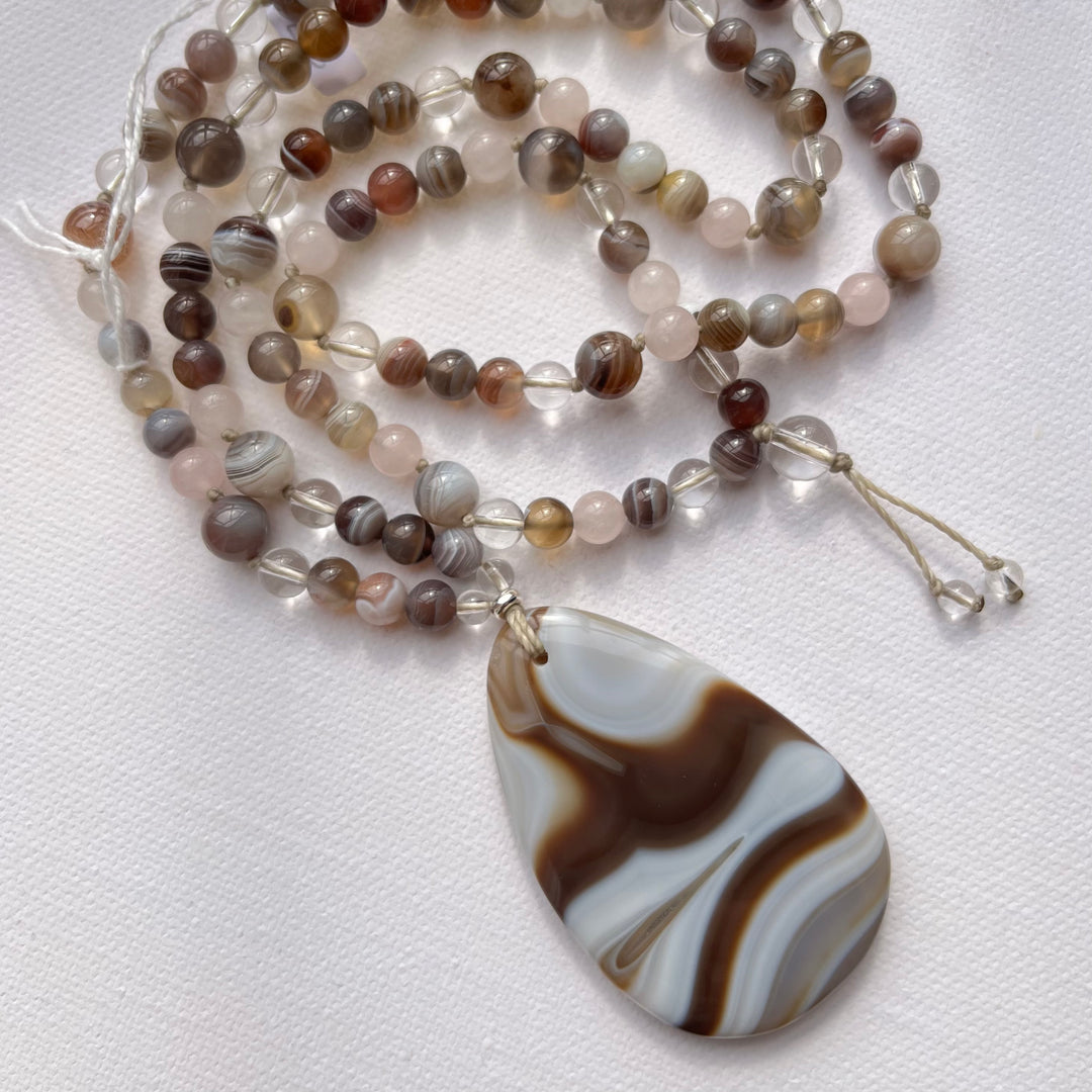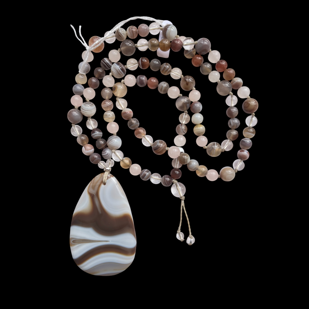 - Pearls in: Agate Botswana 6 and 8 mm, pink quartz 6 mm