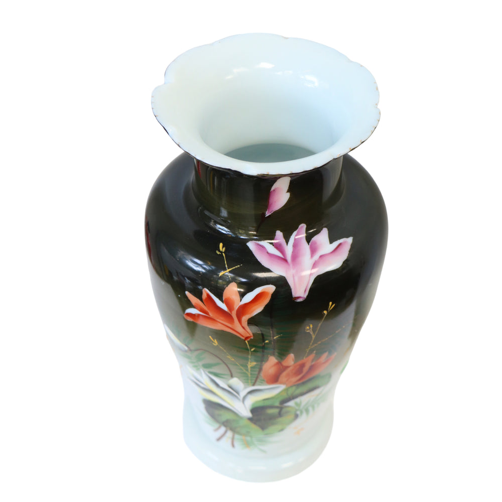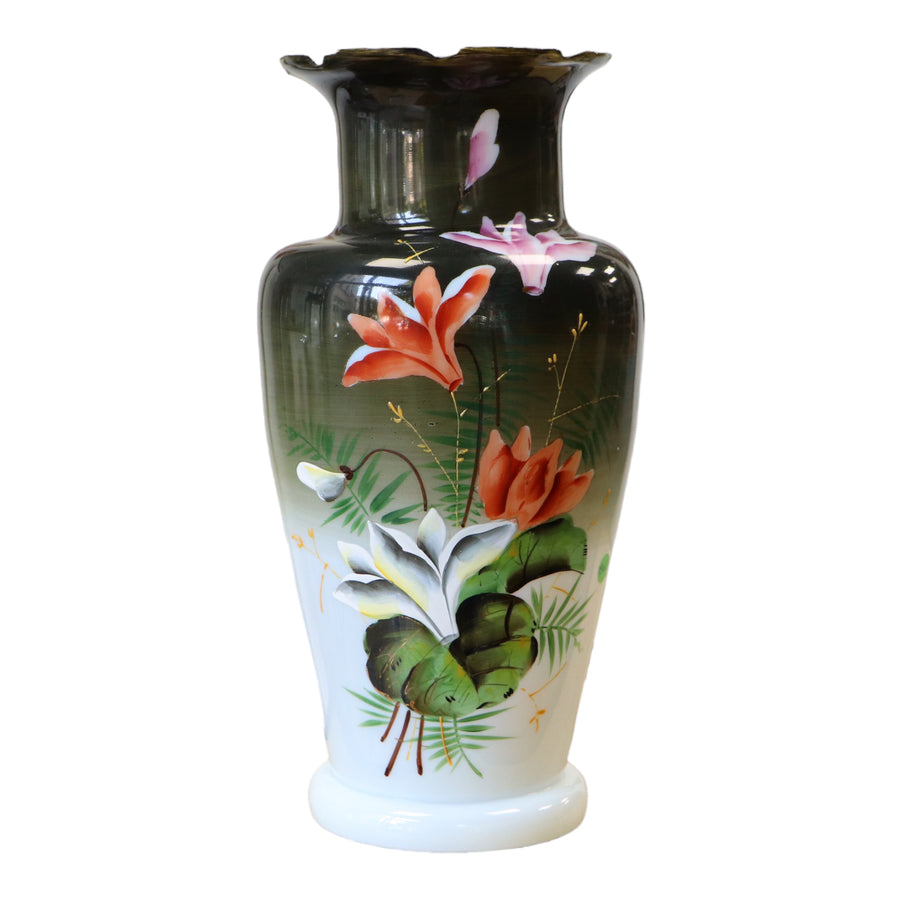 透明なレッドオパリン花瓶。ファンドはフラットではなく、場所に置くのが最善であることに注意してください