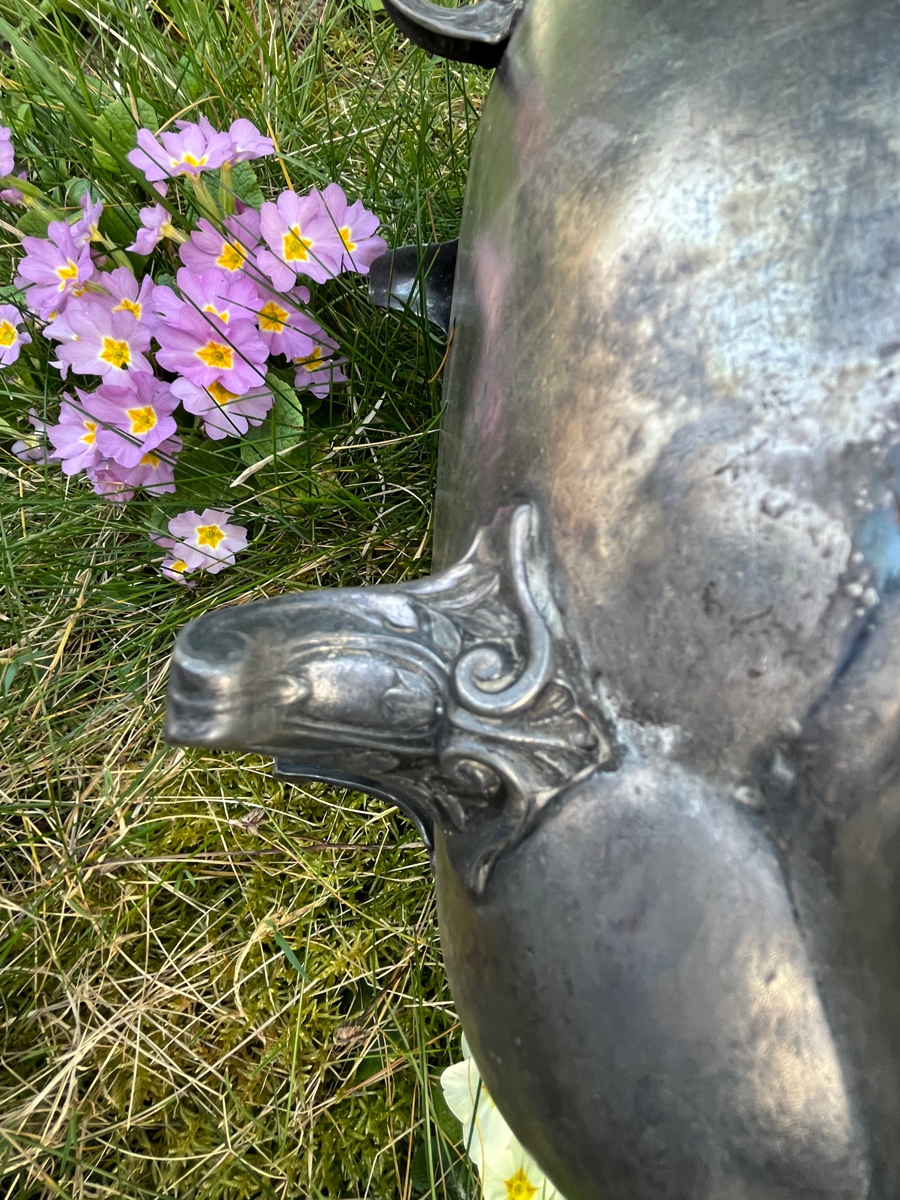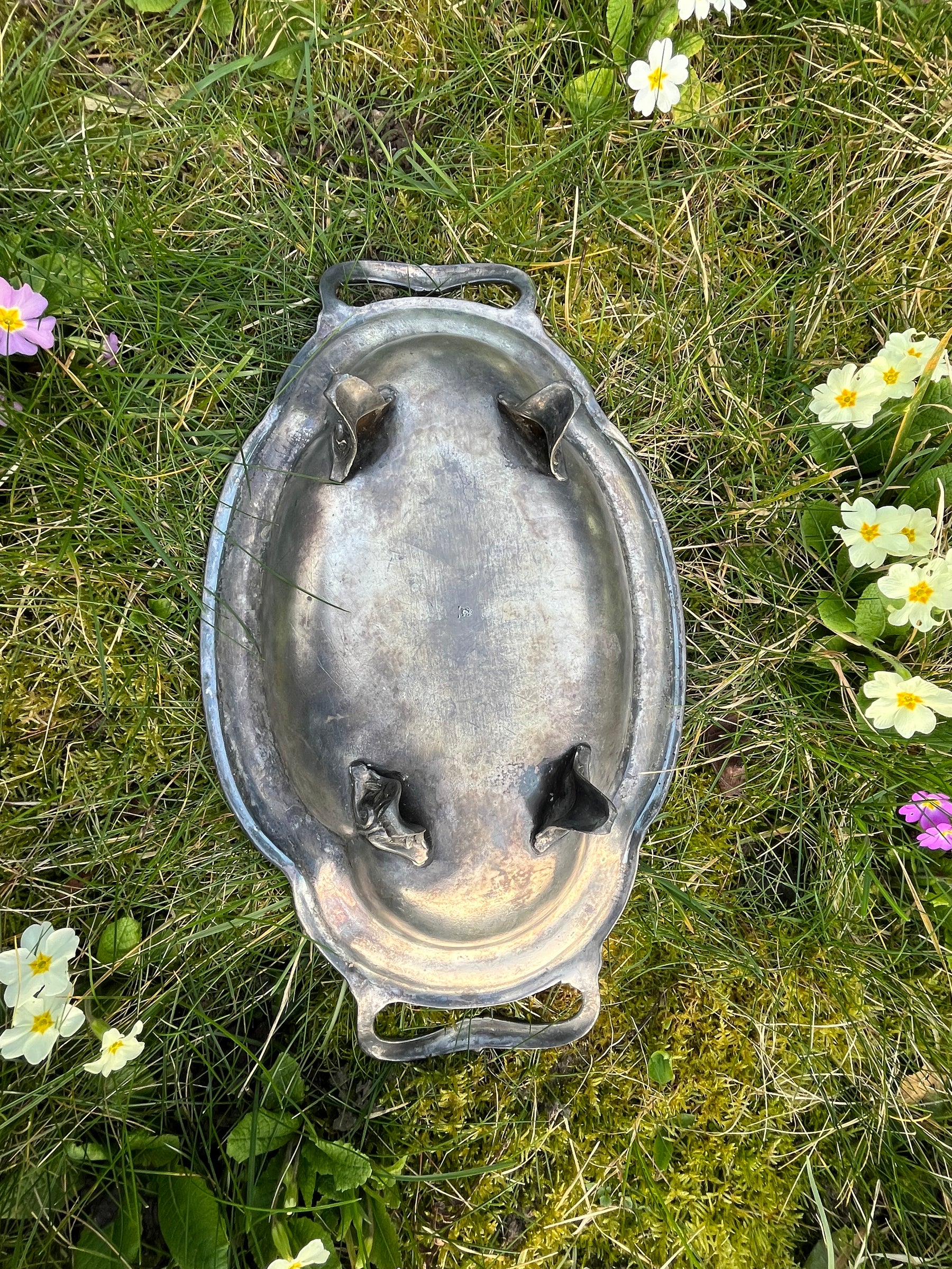 Magnifique corbeille à pain en étain des années 1900 art nouveau