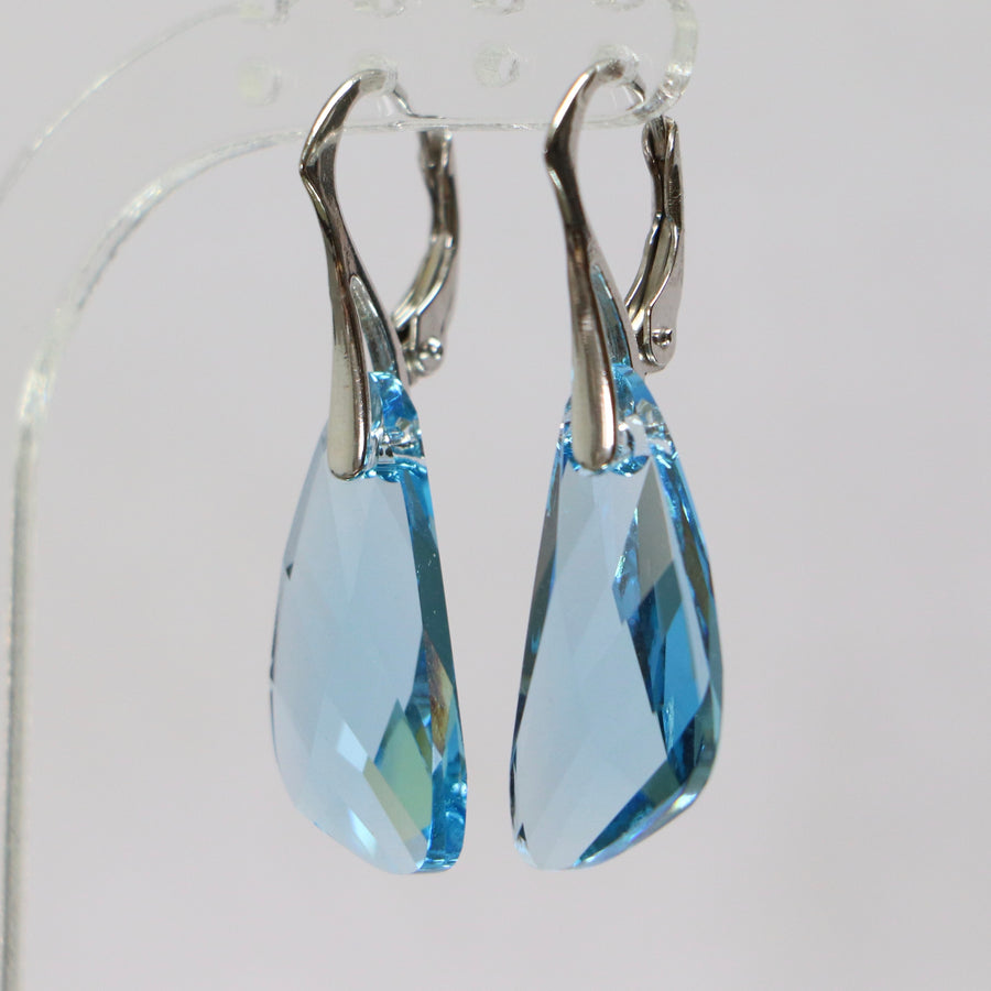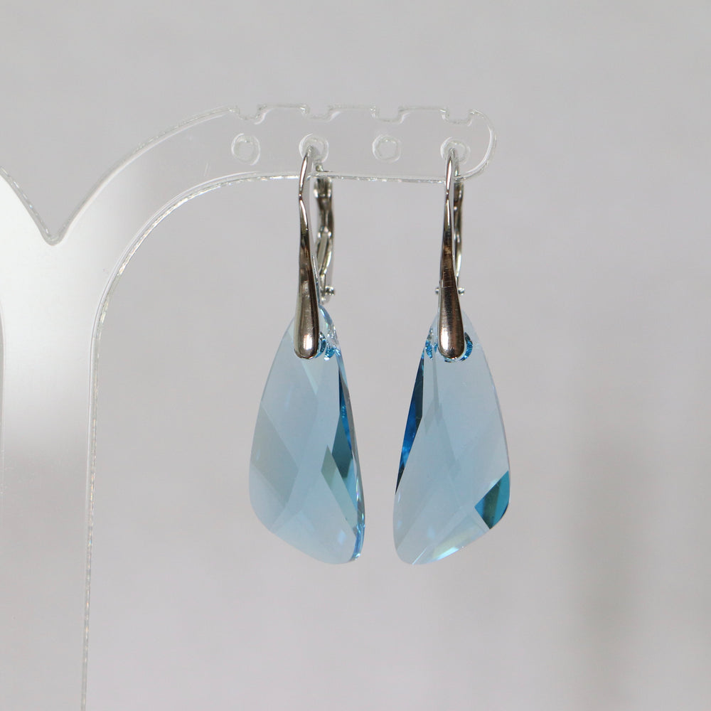 イヤリング、スワロフスキークリスタル、ゴールデンシルバー、タンザナイトブルー、ウィング