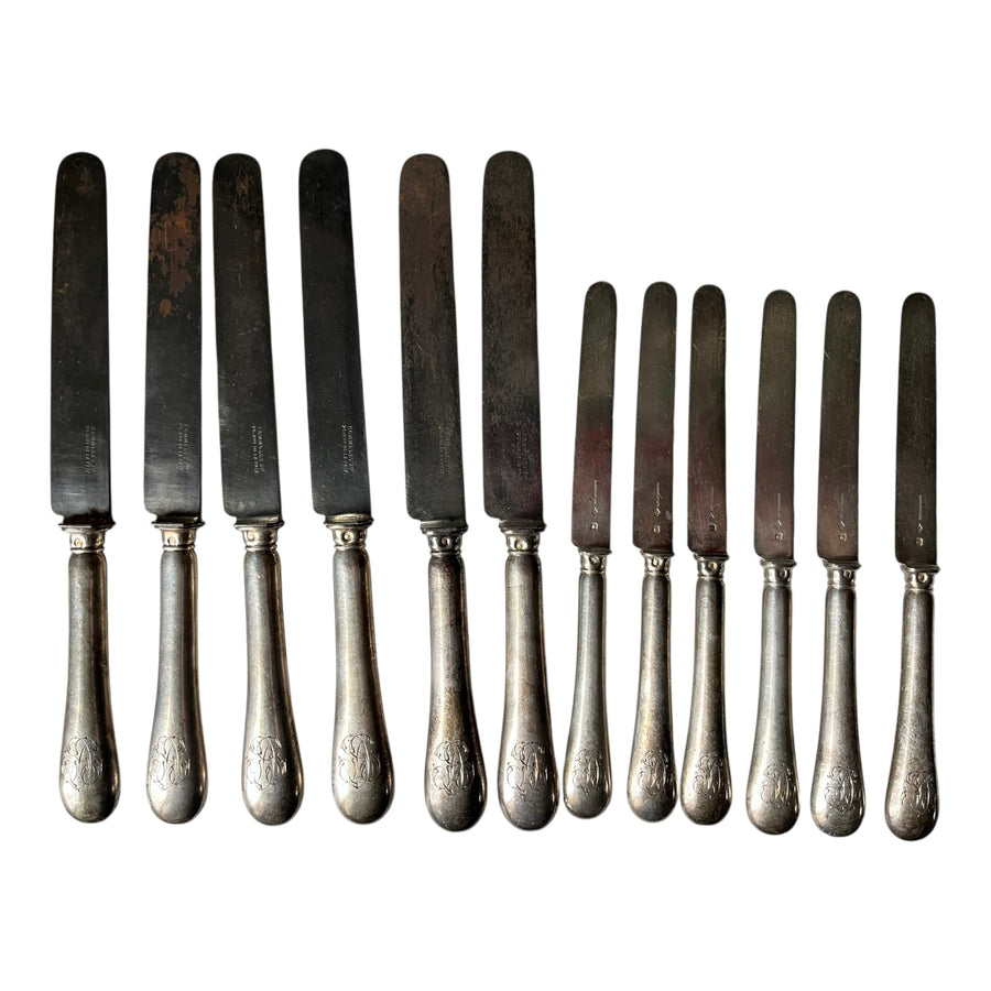 un couvert enfant complet modèle America dans sa boite d’origine . Créée en 1933 par le designer Luc Lanel, la collection de couverts de table AMERICA est un modèle typiquement Art Déco.
