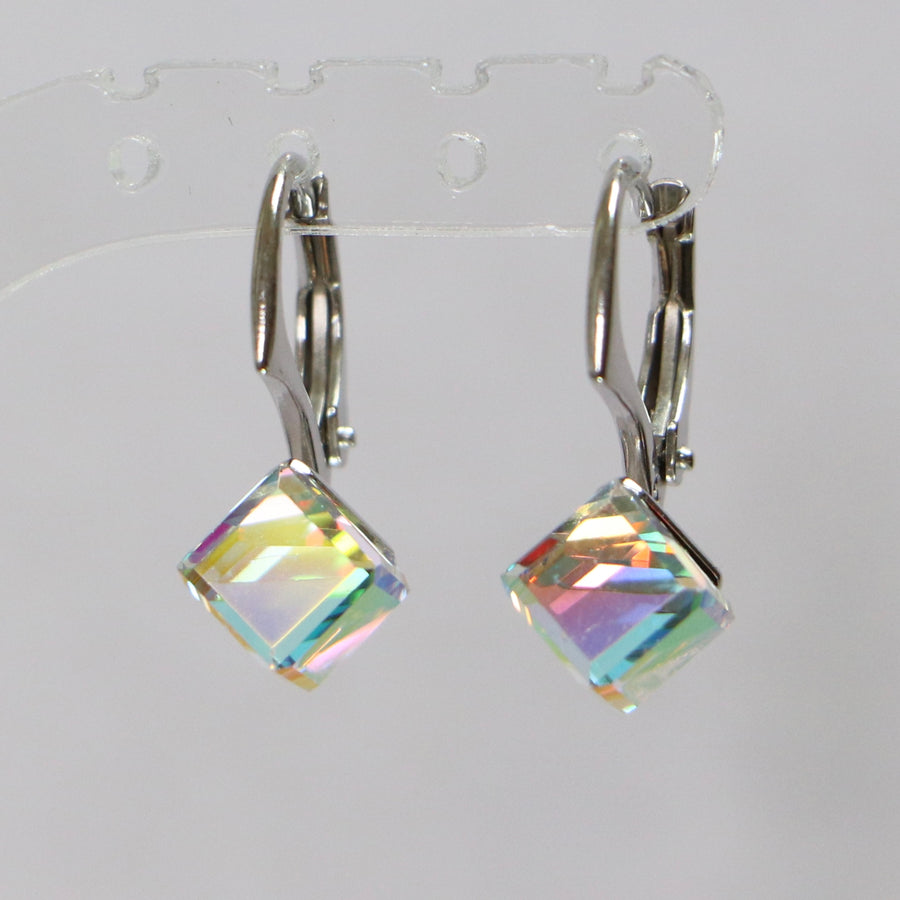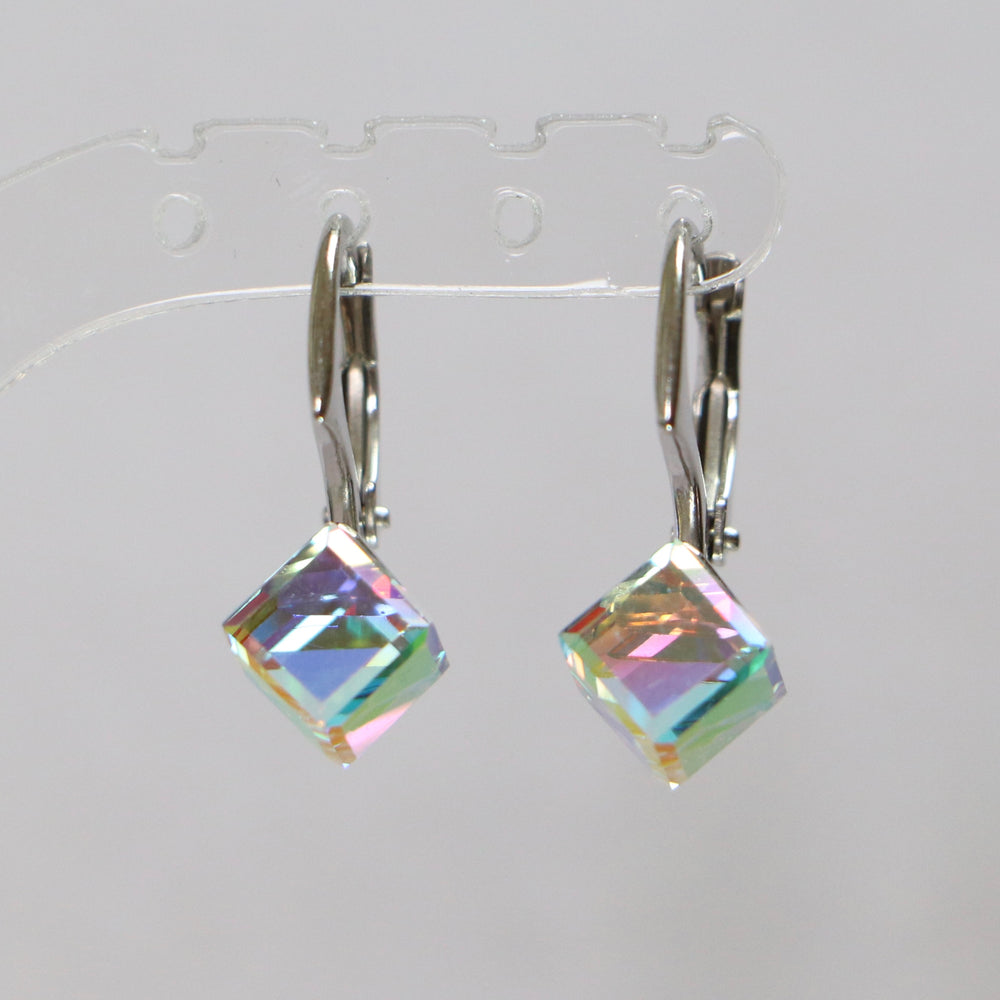 イヤリング、スワロフスキークリスタル、ローディーシルバー、ABクリスタル、キュービック