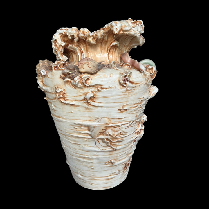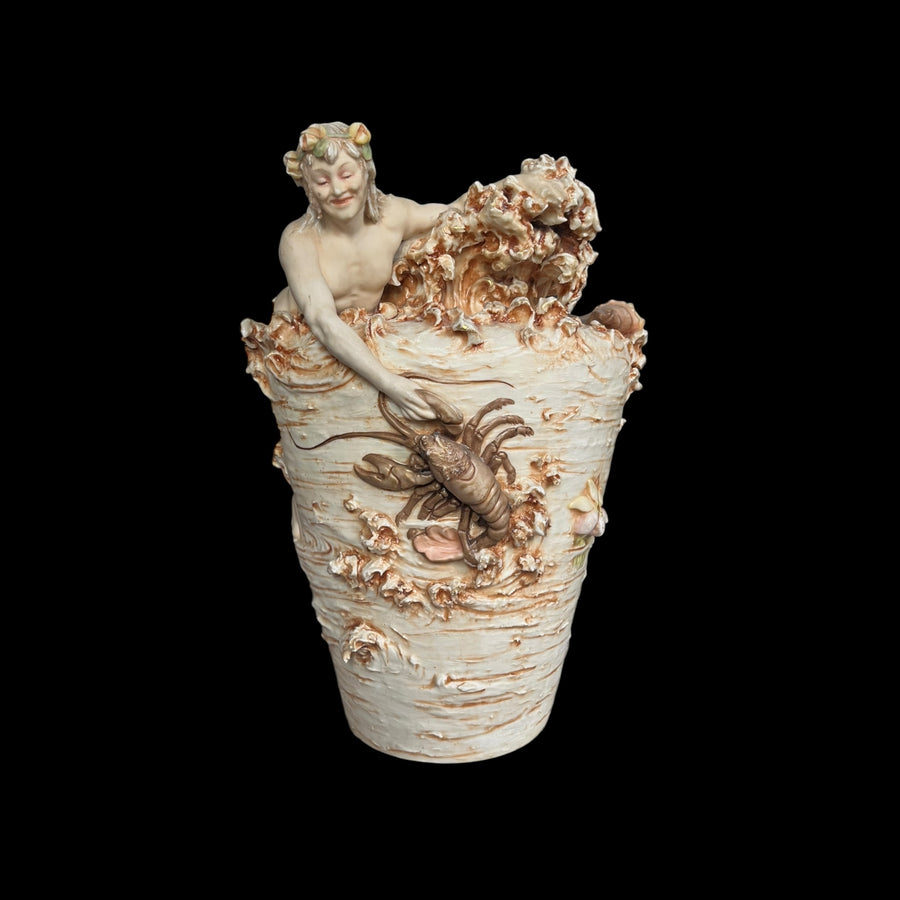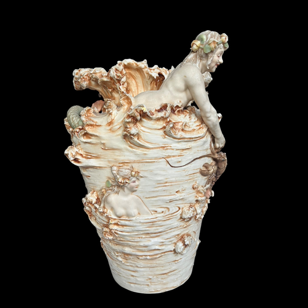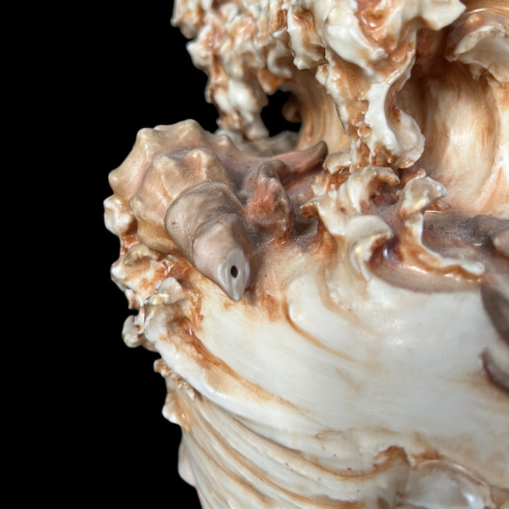 3つの短いギャップを備えた王室のダックスの壮大な芸術ヌーボーセラミック花瓶。そのうちの1つはシェルテールのレベルにあります
