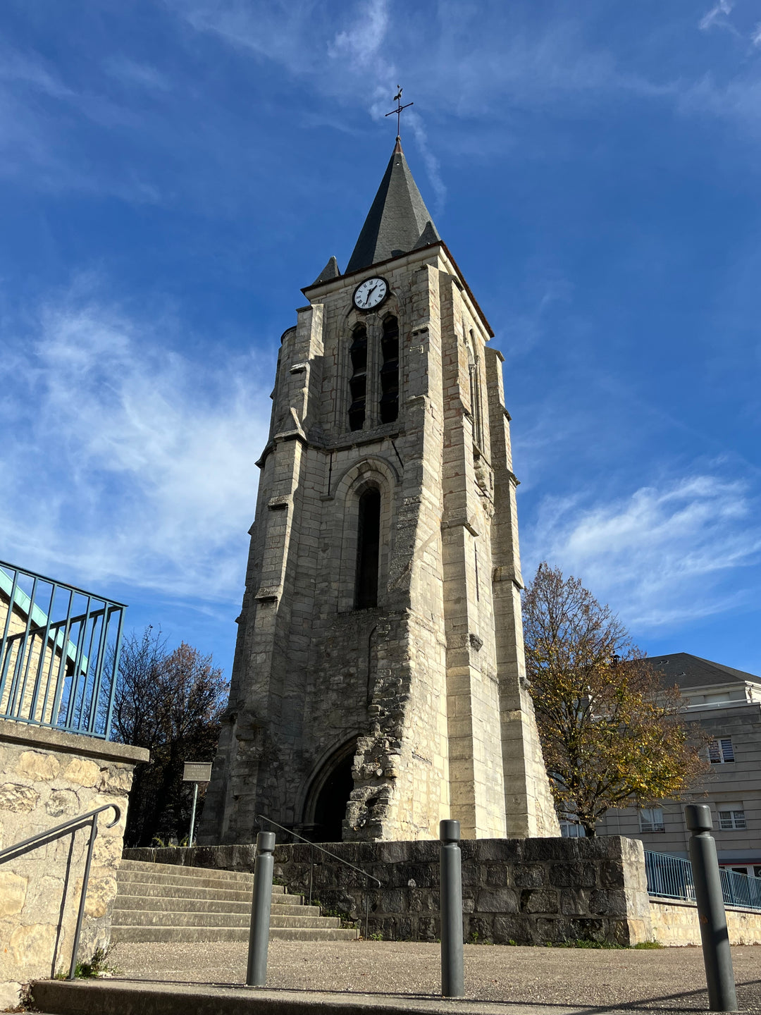 Église Sainte-Marie-Madeleine de Massy: touchée en juin 1944 par des bombardements alliés visant la gare de triage, seul le clocher est resté debout.