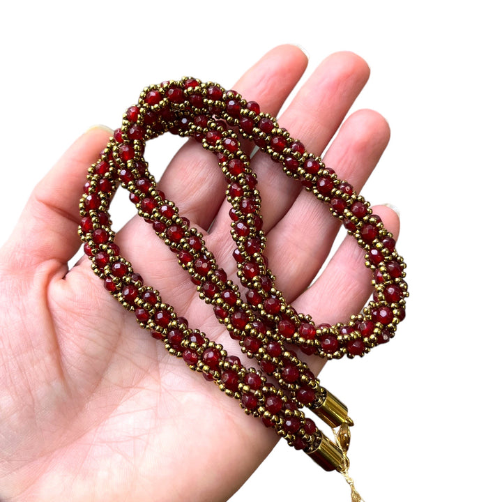 Collier au crochet en jade rouge, teinté, et perles Miyuki, 50 cm