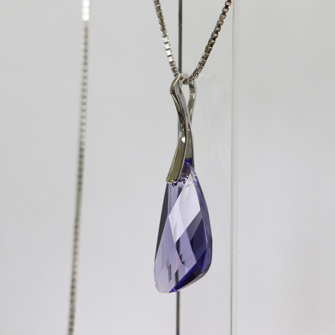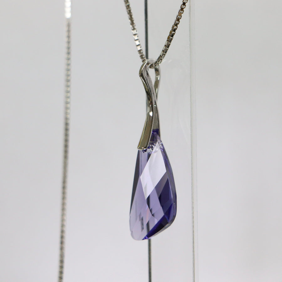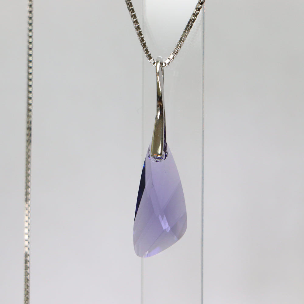 Pendentif, cristaux Swarovski, argent doré, bleu tanzanite, WING