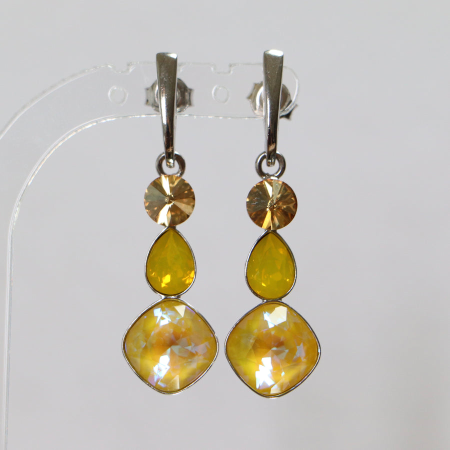 Серьги, кристаллы Сваровски, Rhodied Silver, Yellow, Art-Deco