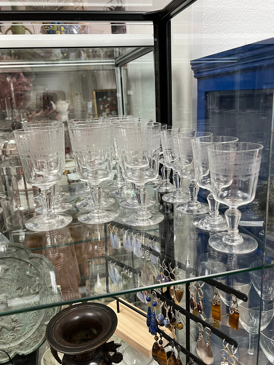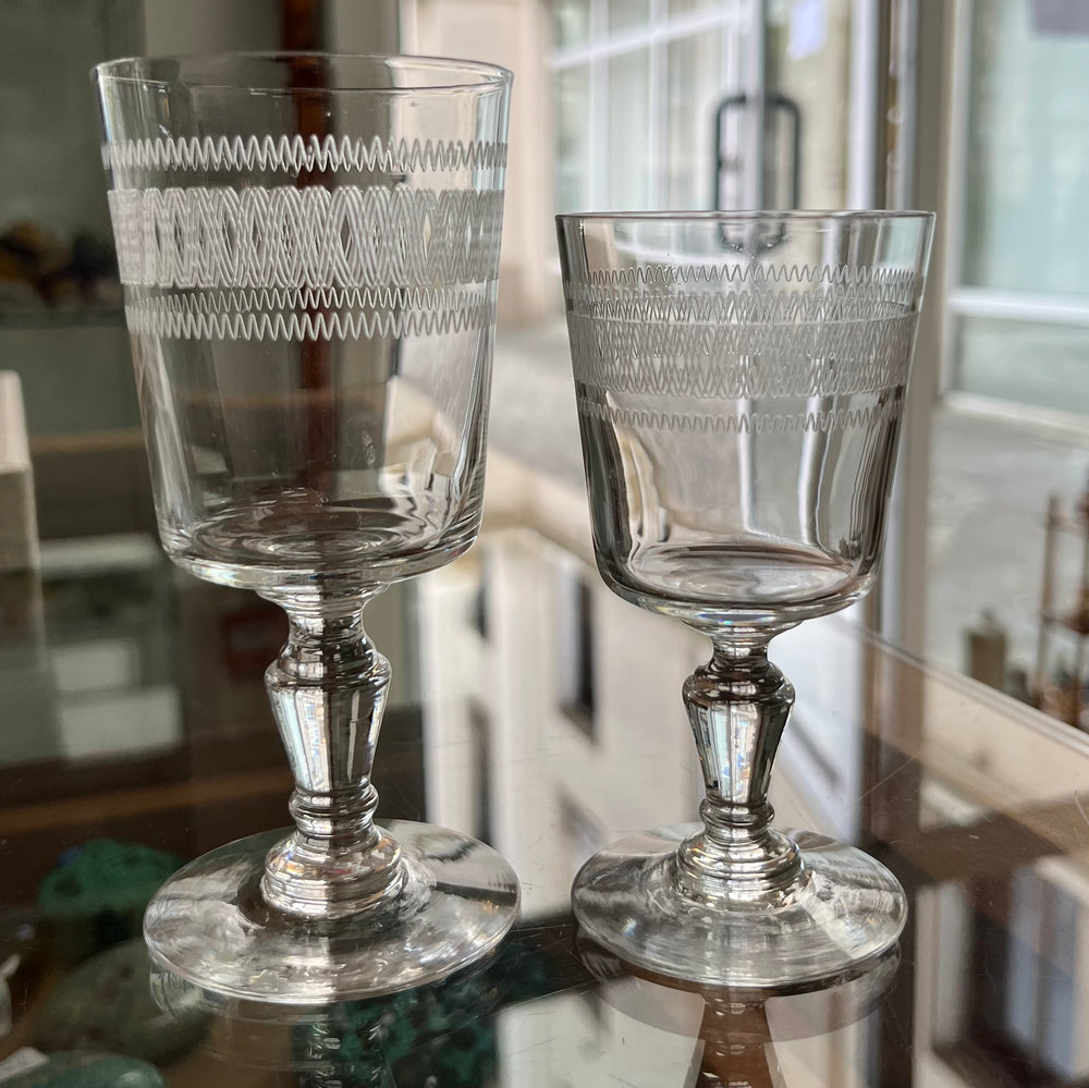 Хрустальные очки ликера (один с небольшим дефектом на краю) и вино Porto
