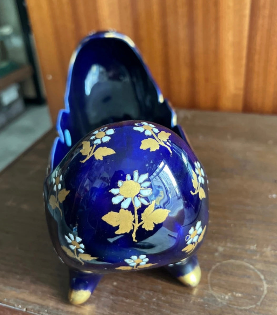Полночное синее кашпо с золотыми цветами