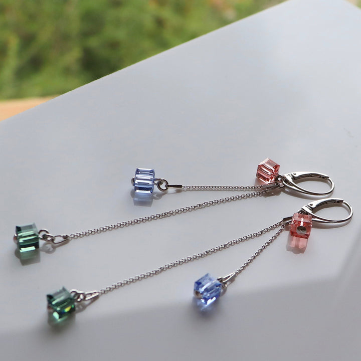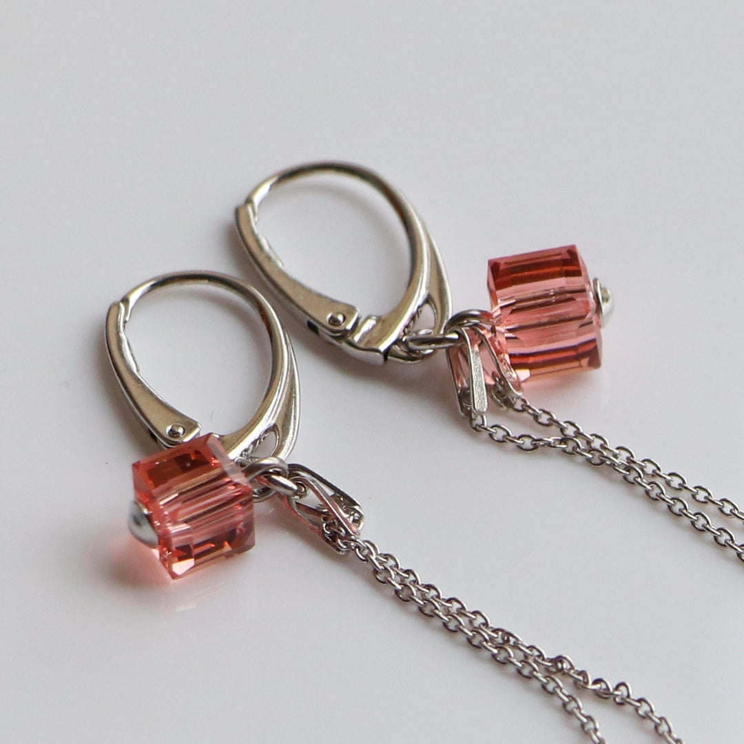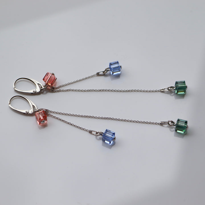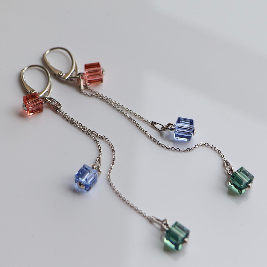 Ювелирные изделия в той же коллекции: серьги с длинным демпфированием модель A, серьги с длинной B Model B, ожерелье с 7 кубами, браслет с 6 кубиками. Размер кристалла составляет 8 мм. Смотрите коллекцию Candice ->