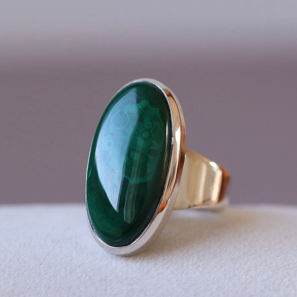 Серебряное кольцо с малахитом - размер 57 - BS070