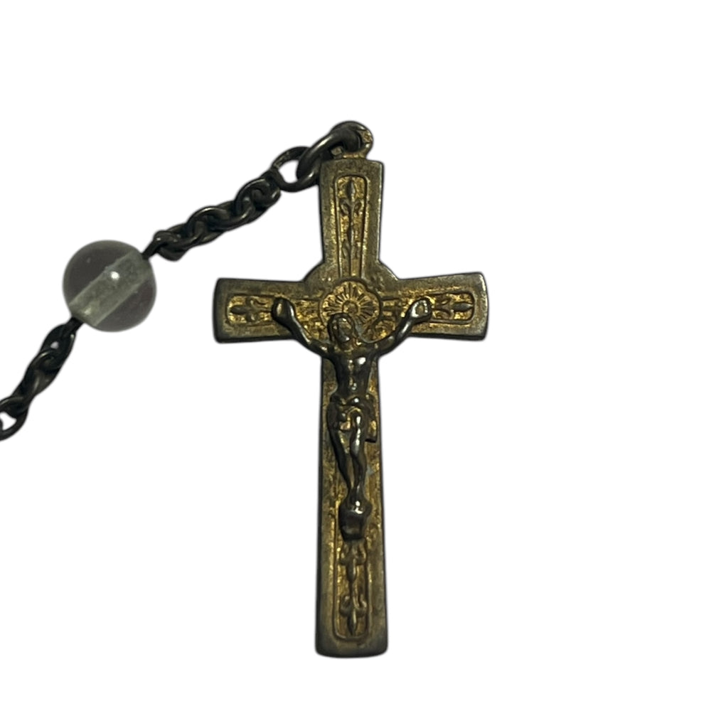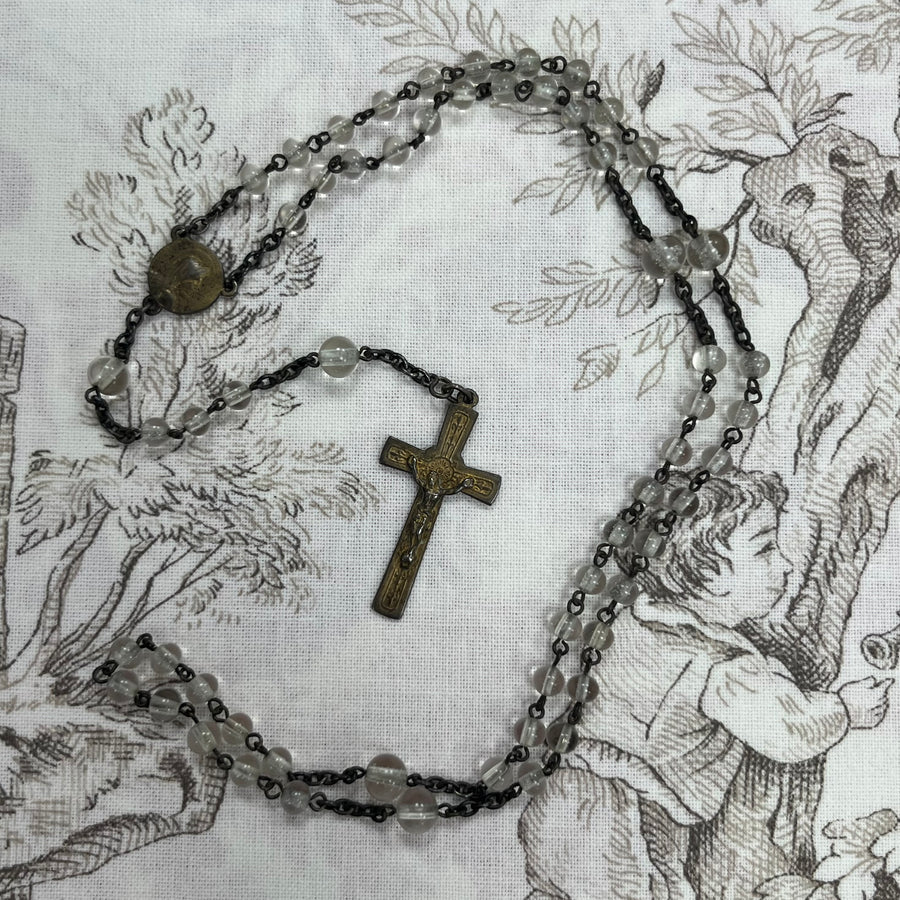 Старый Розарий в начале 20-го века (девственная медаль, подписанная Сильвейном Кинсбургером (1855-1835) с бриллиантовым ударом и христом в золотом серебре и бусинках, взорванных на серебряной цепи
