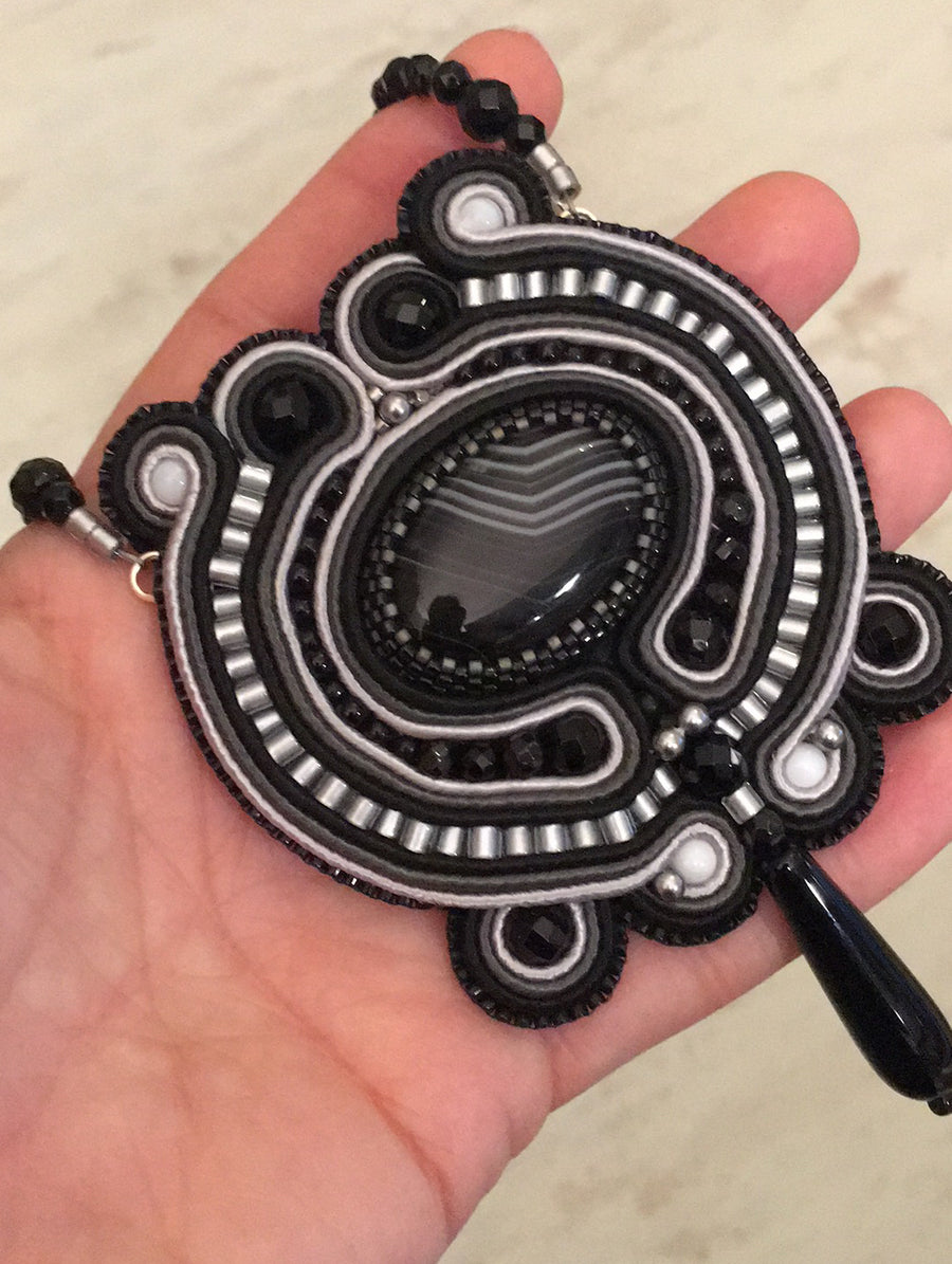 Вышитое ожерелье с черным агатом, ониксом, миоки Жемчужина и Сутач